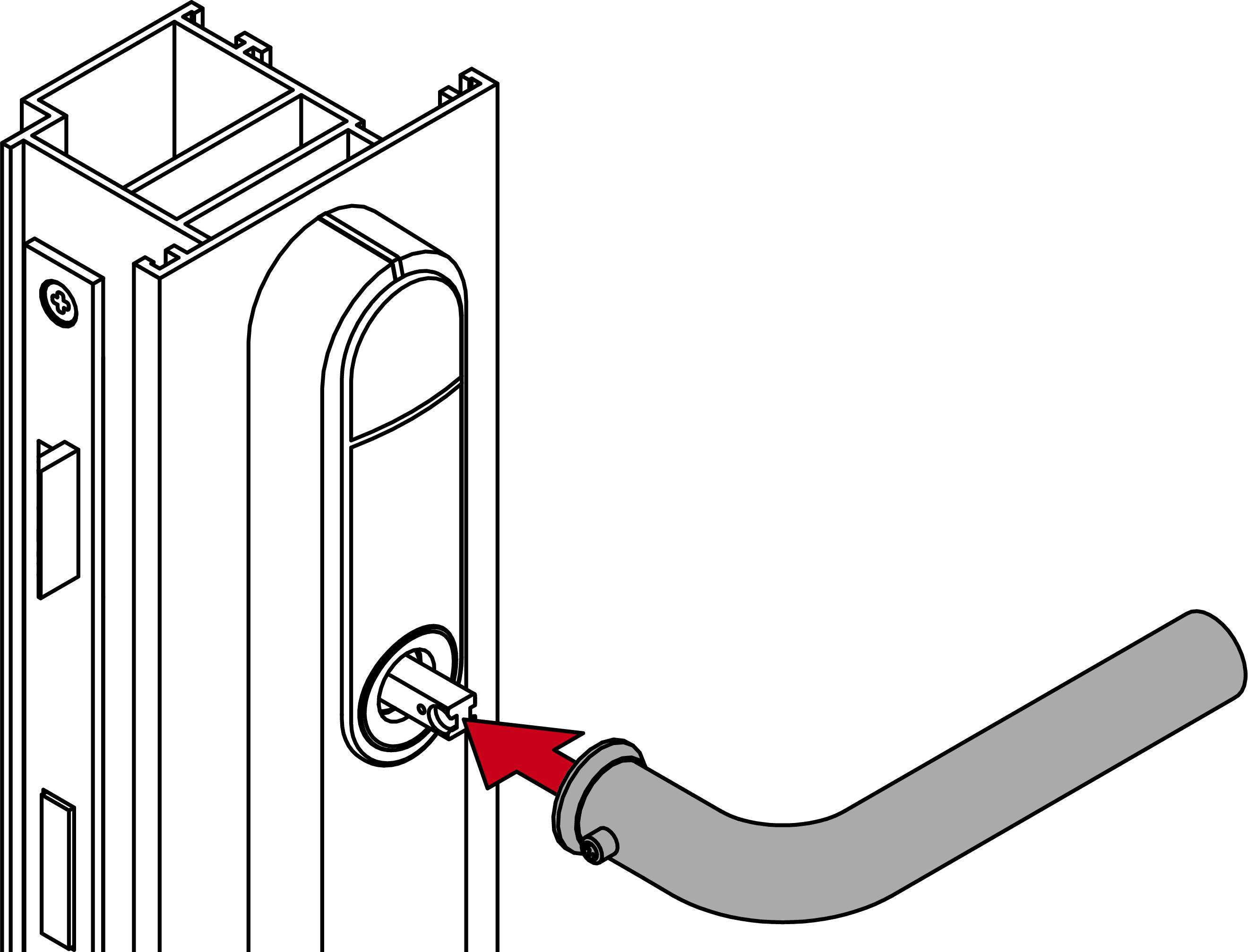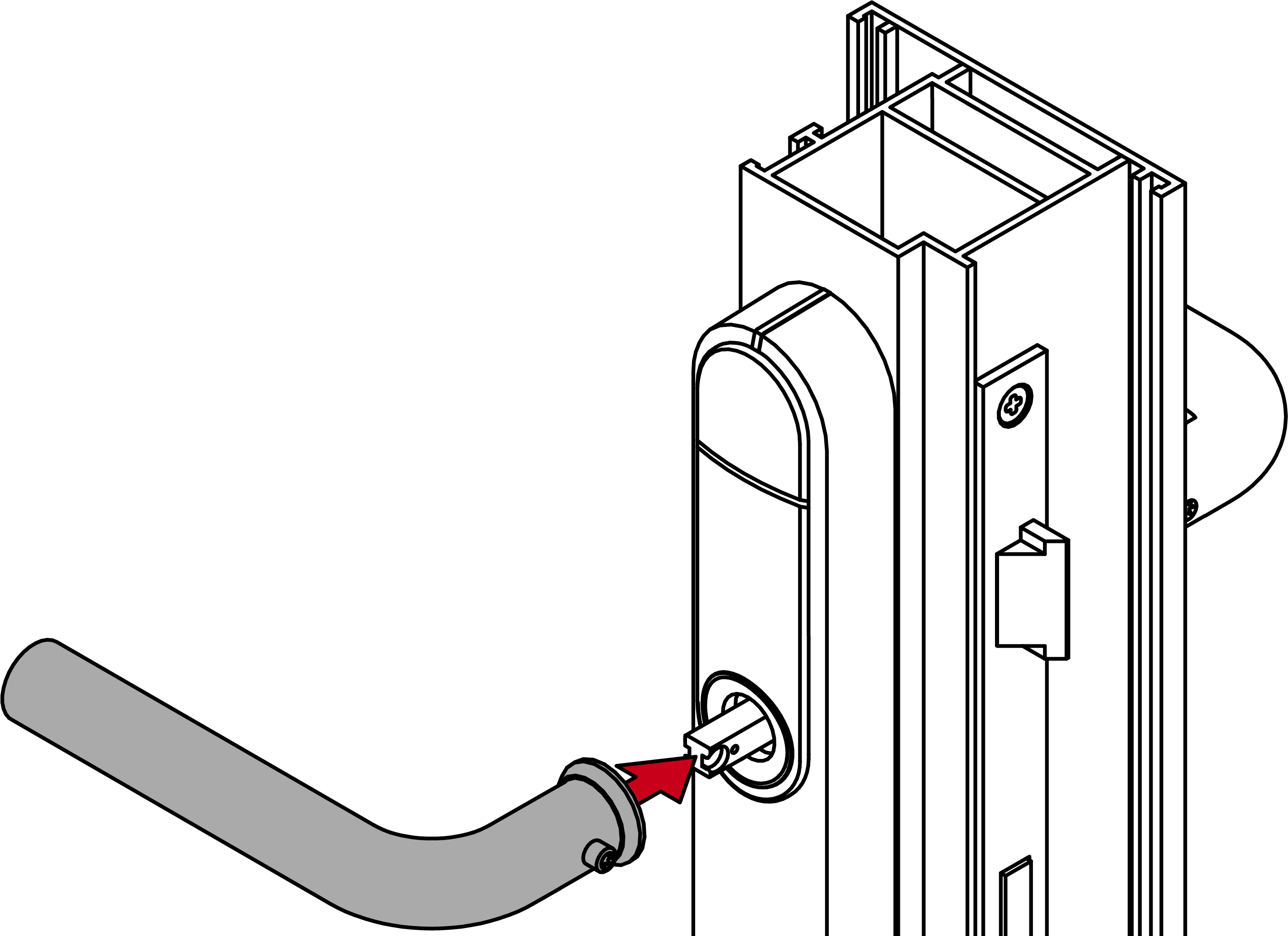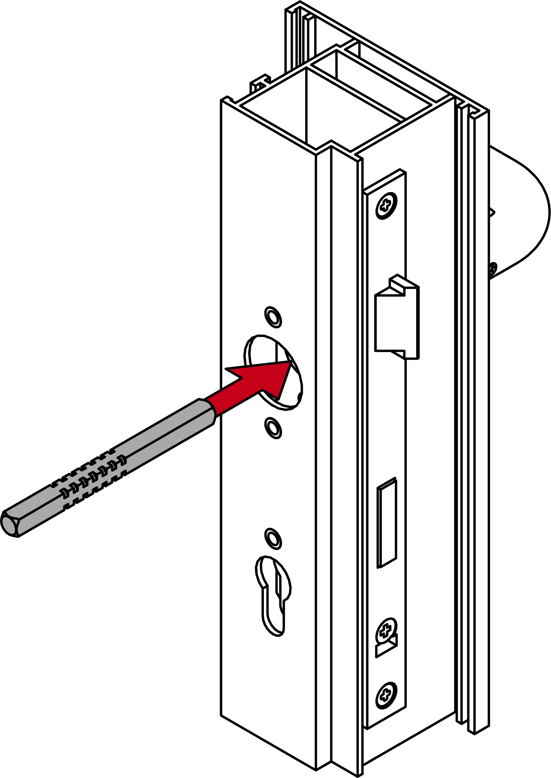 - Stecken Sie den Vierkant bis zum Anschlag in die Tür.