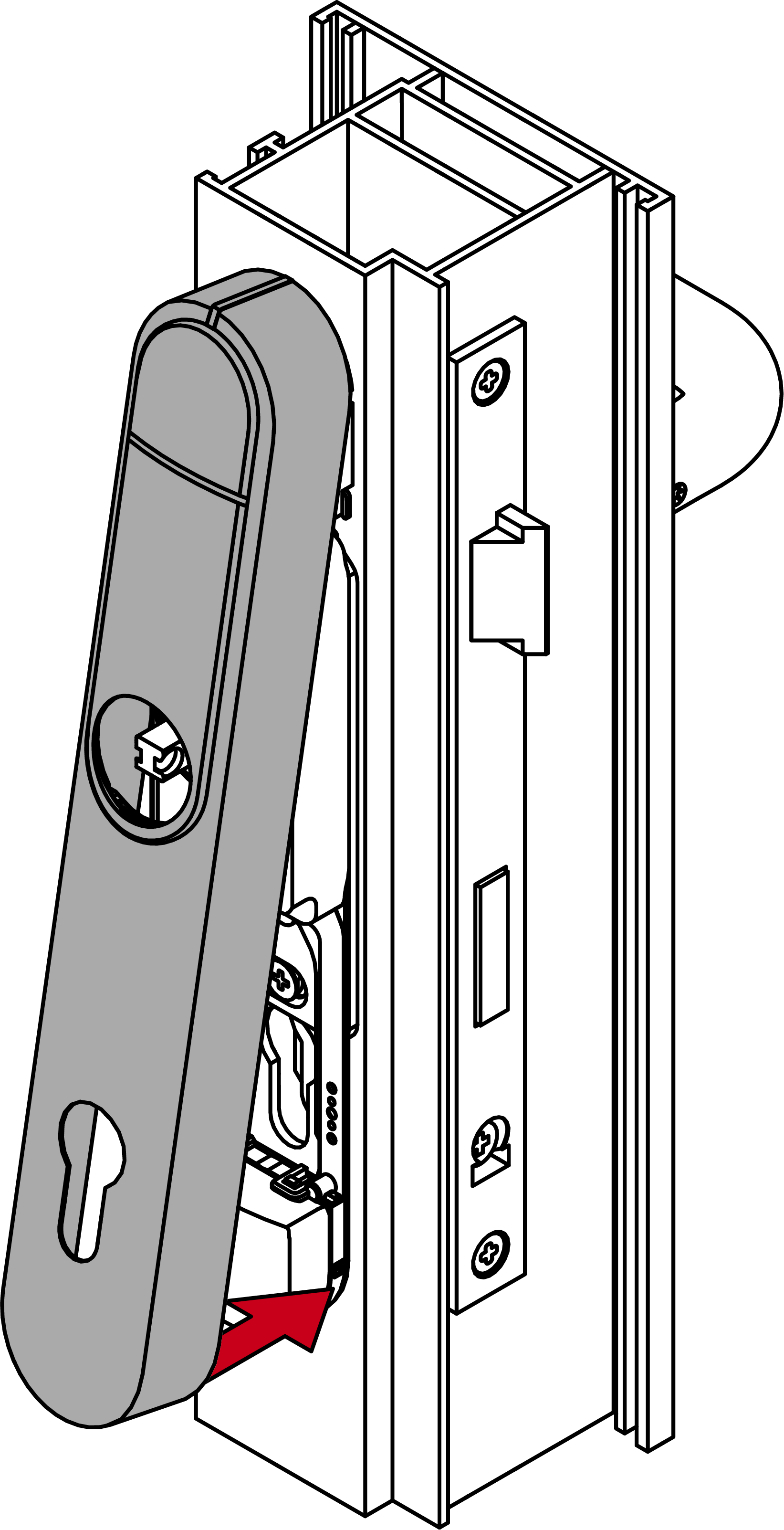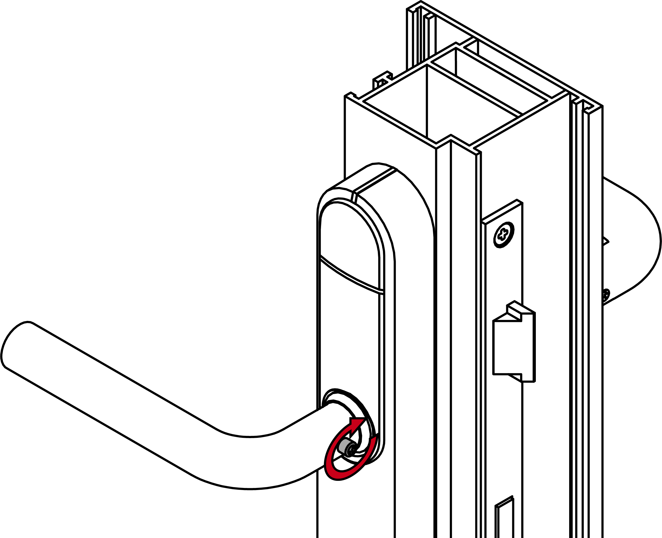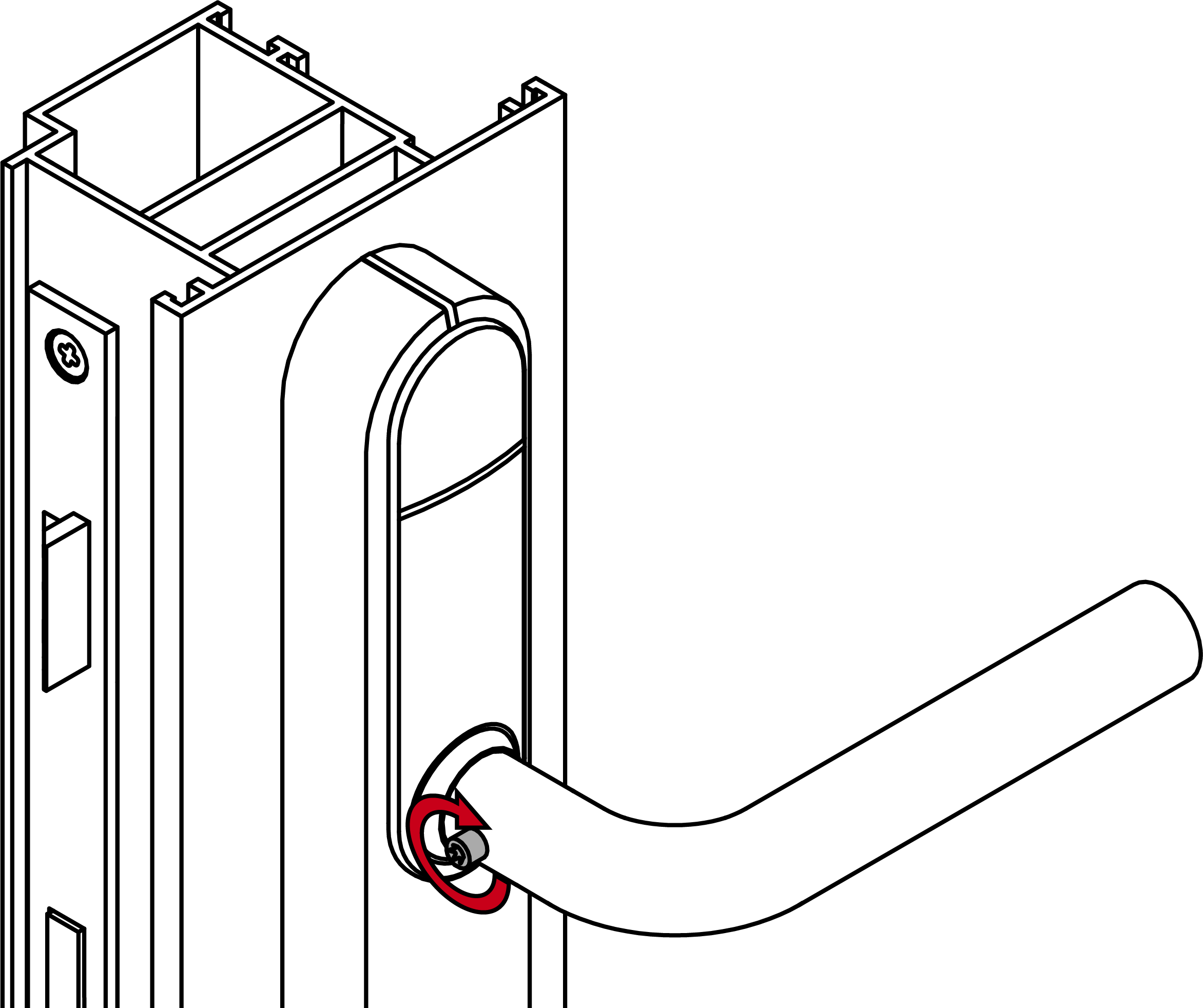 - Schrauben Sie die Madenschraube im Außendrücker fest (TX15, Drehmoment 5,0 Nm).