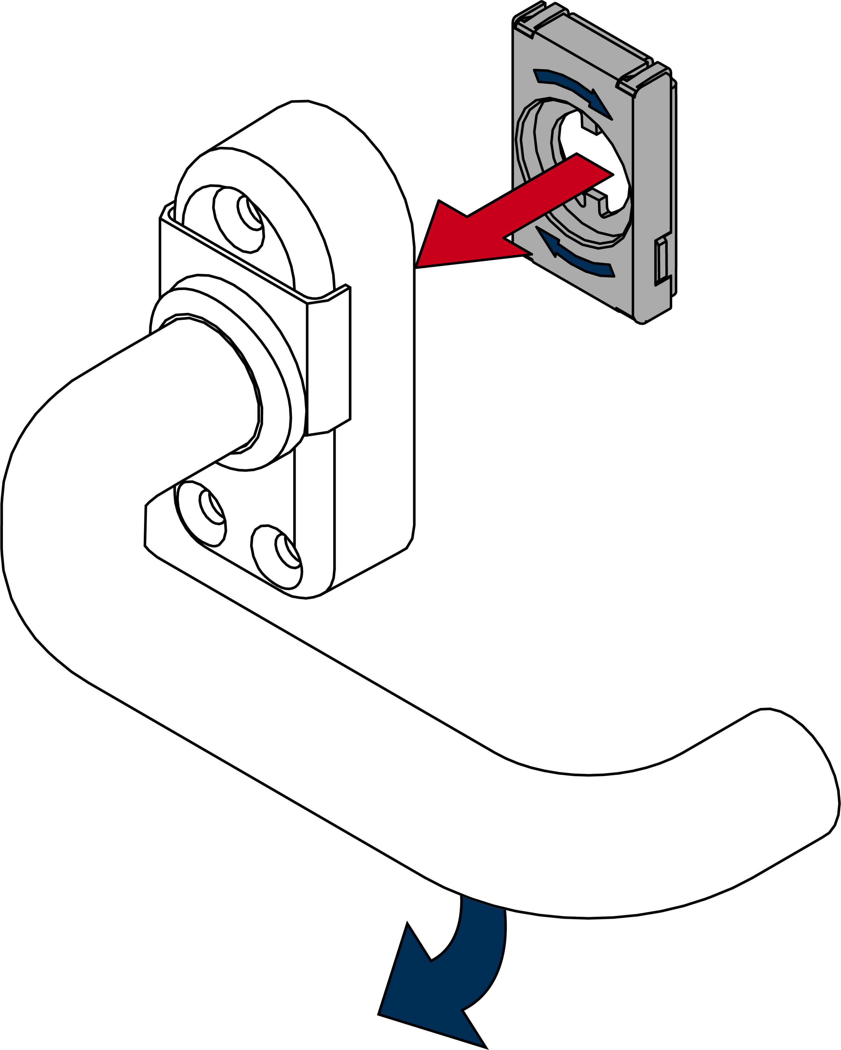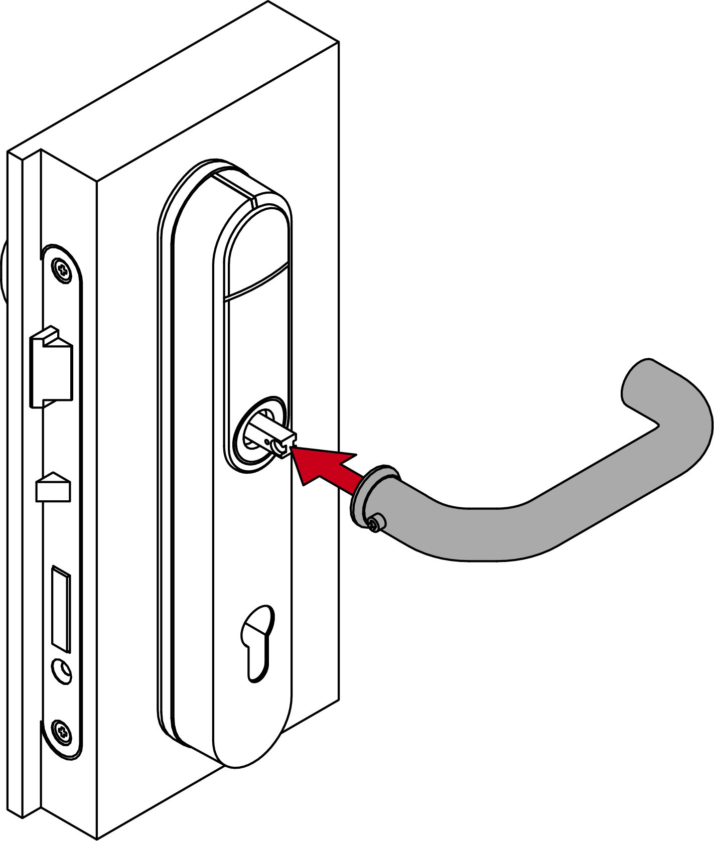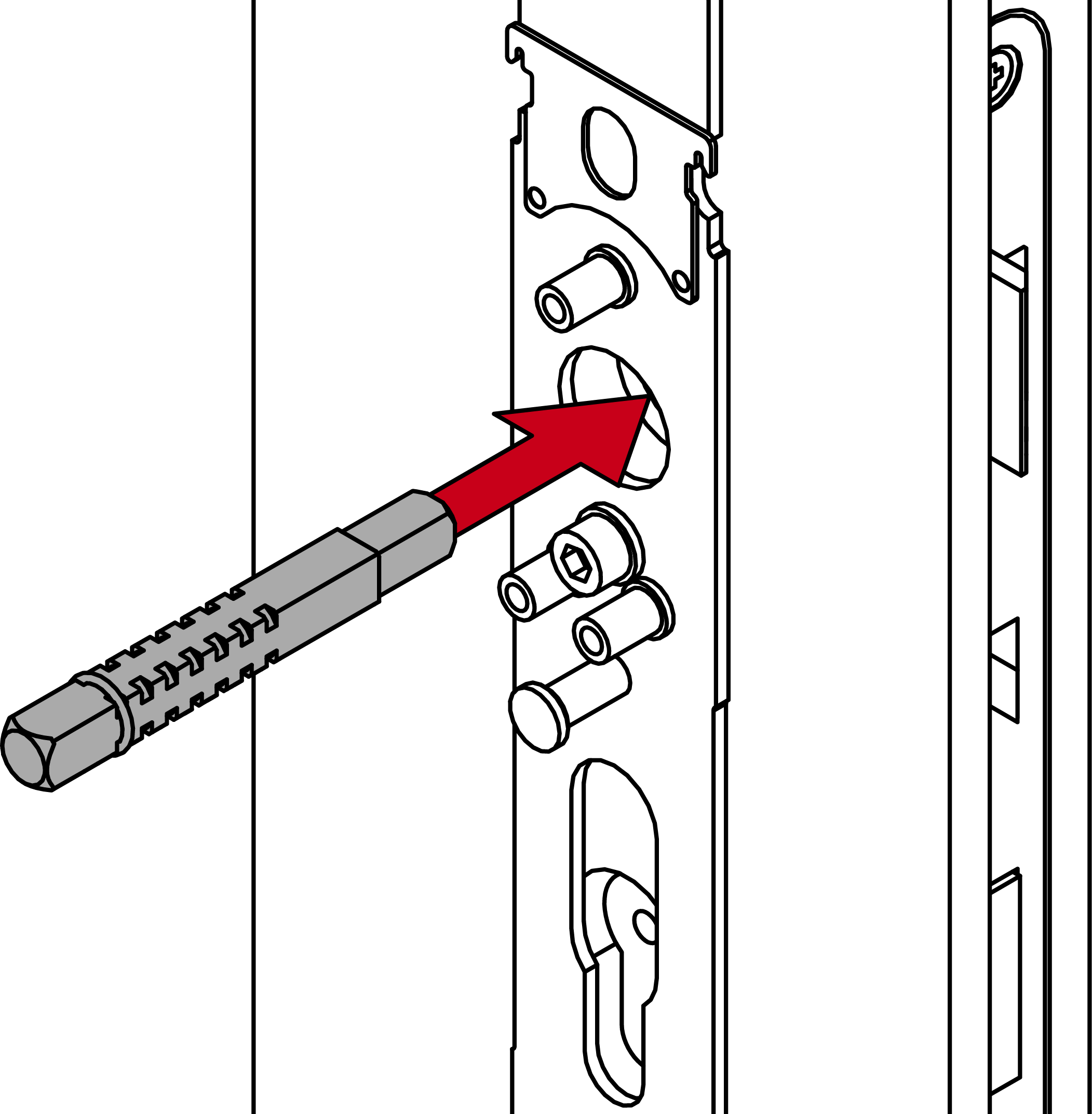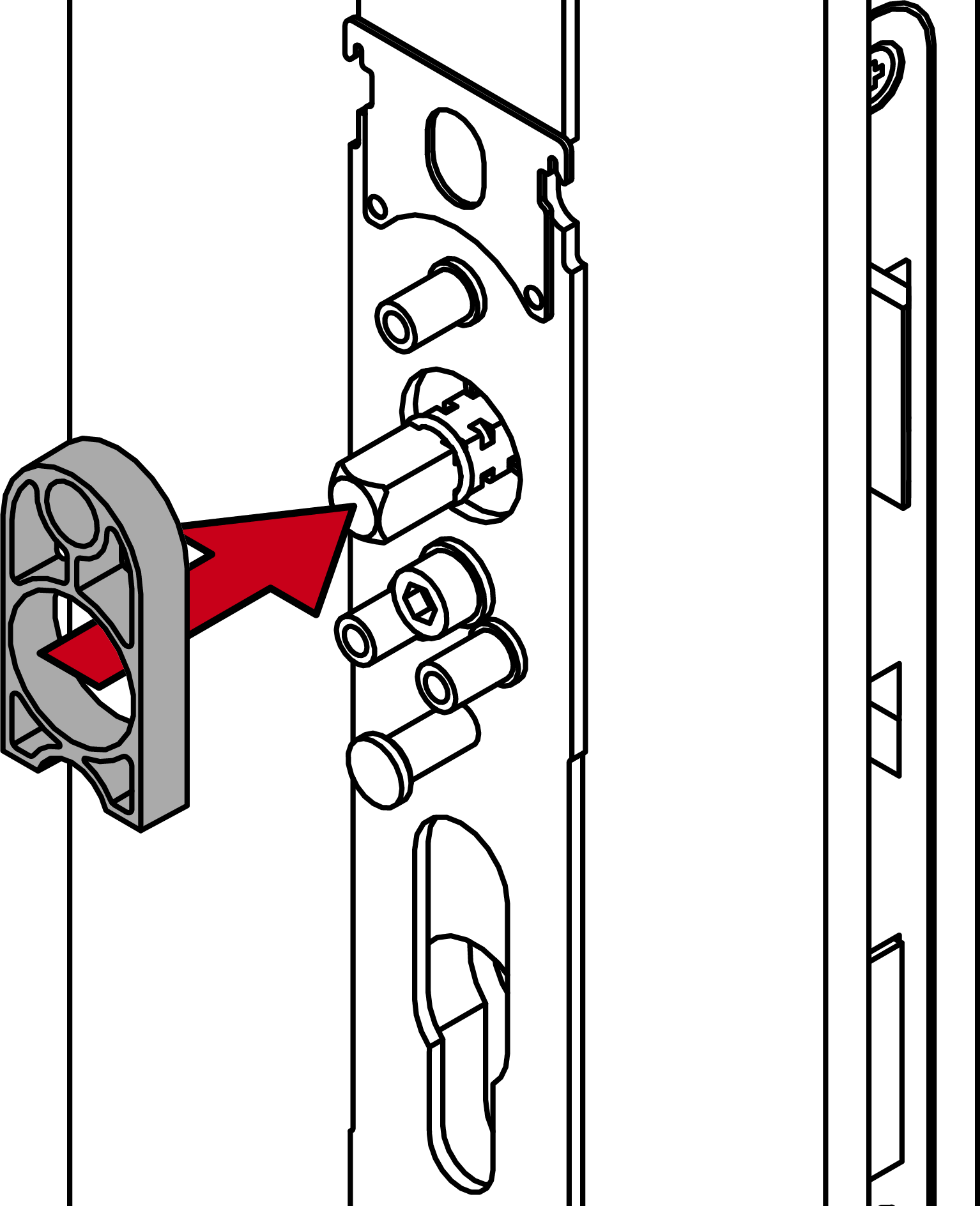 - Stecken Sie den Vierkant mit der ringfreien Seite bis zum Anschlag in die Tür.