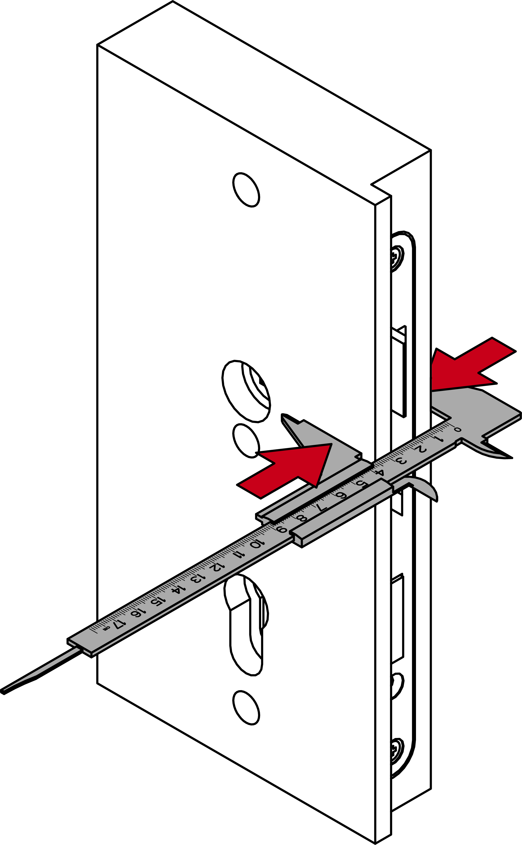 - Bestimmen Sie mit der gemessenen Türdicke die benötigten Schrauben.