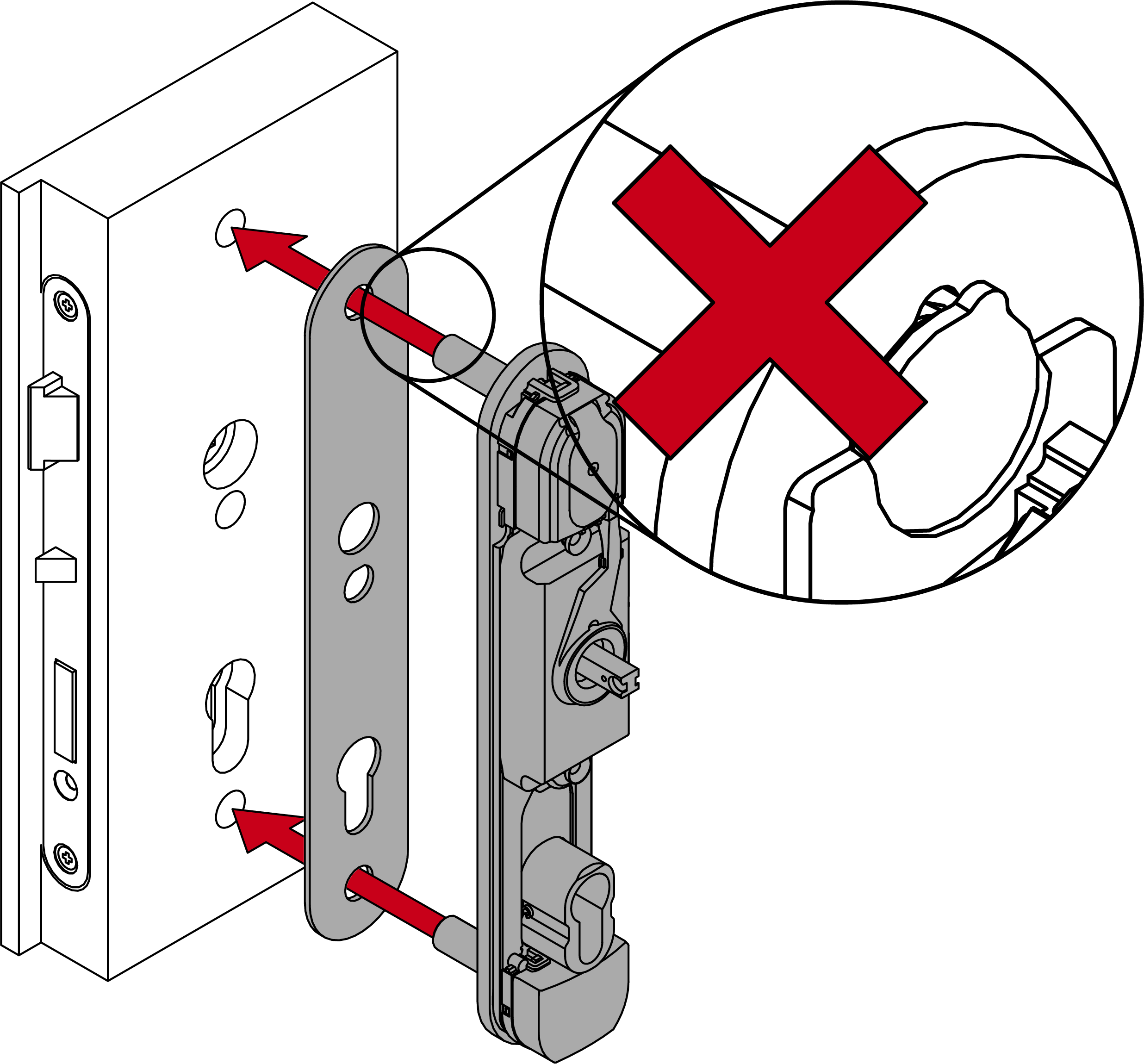 - Das Gehäuse des Schließzylinders darf maximal 3 mm über das Zylinder-Schutzprofil überstehen.