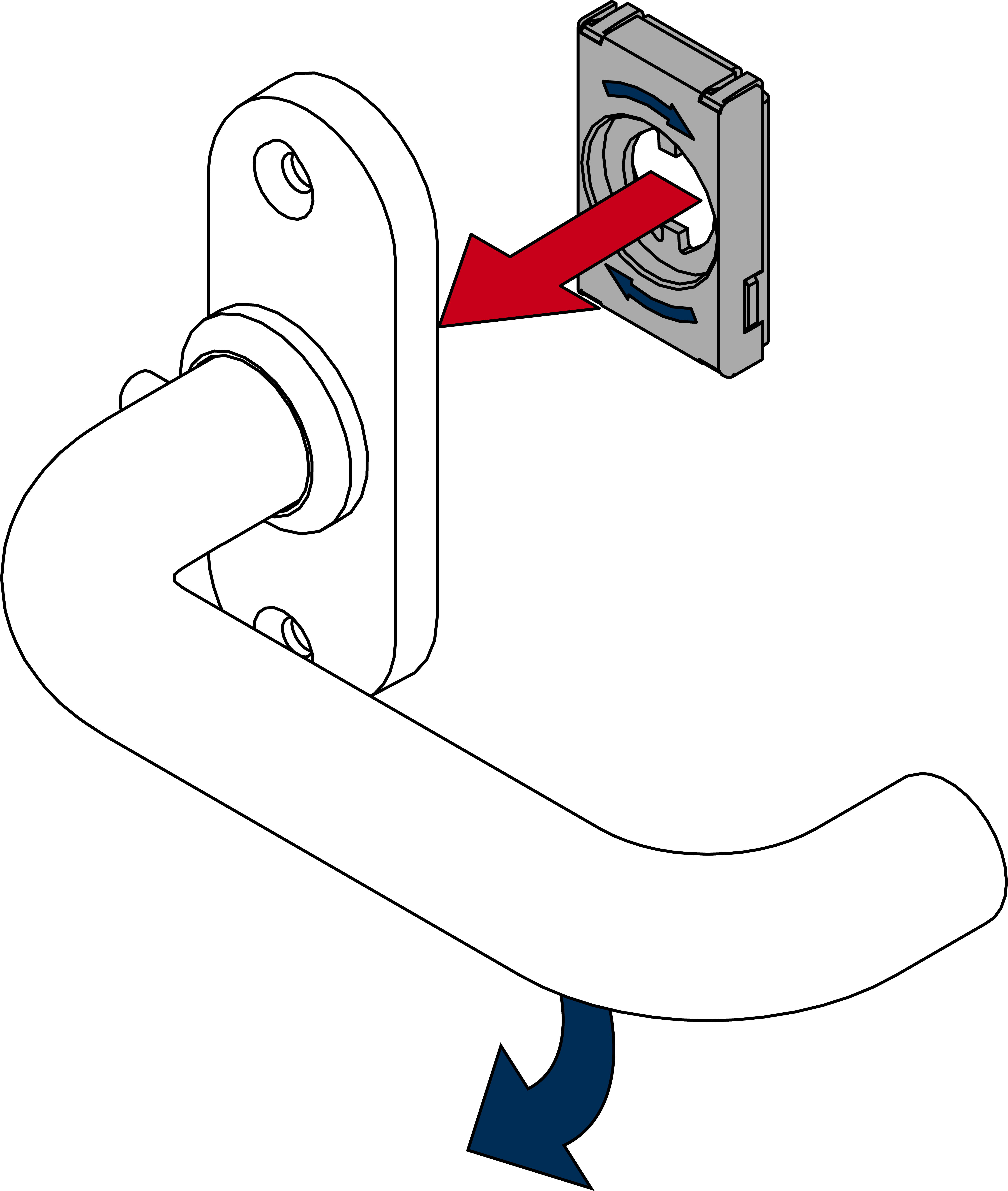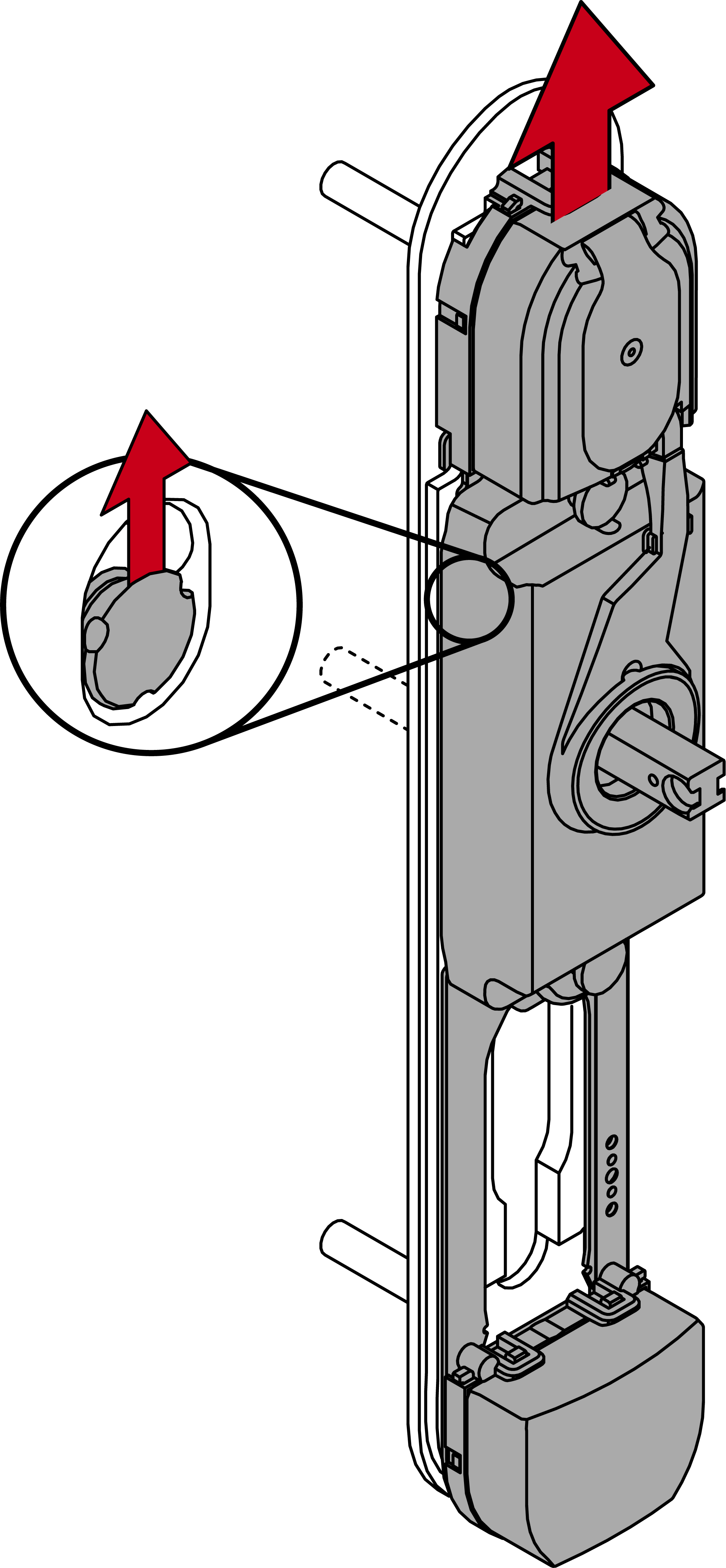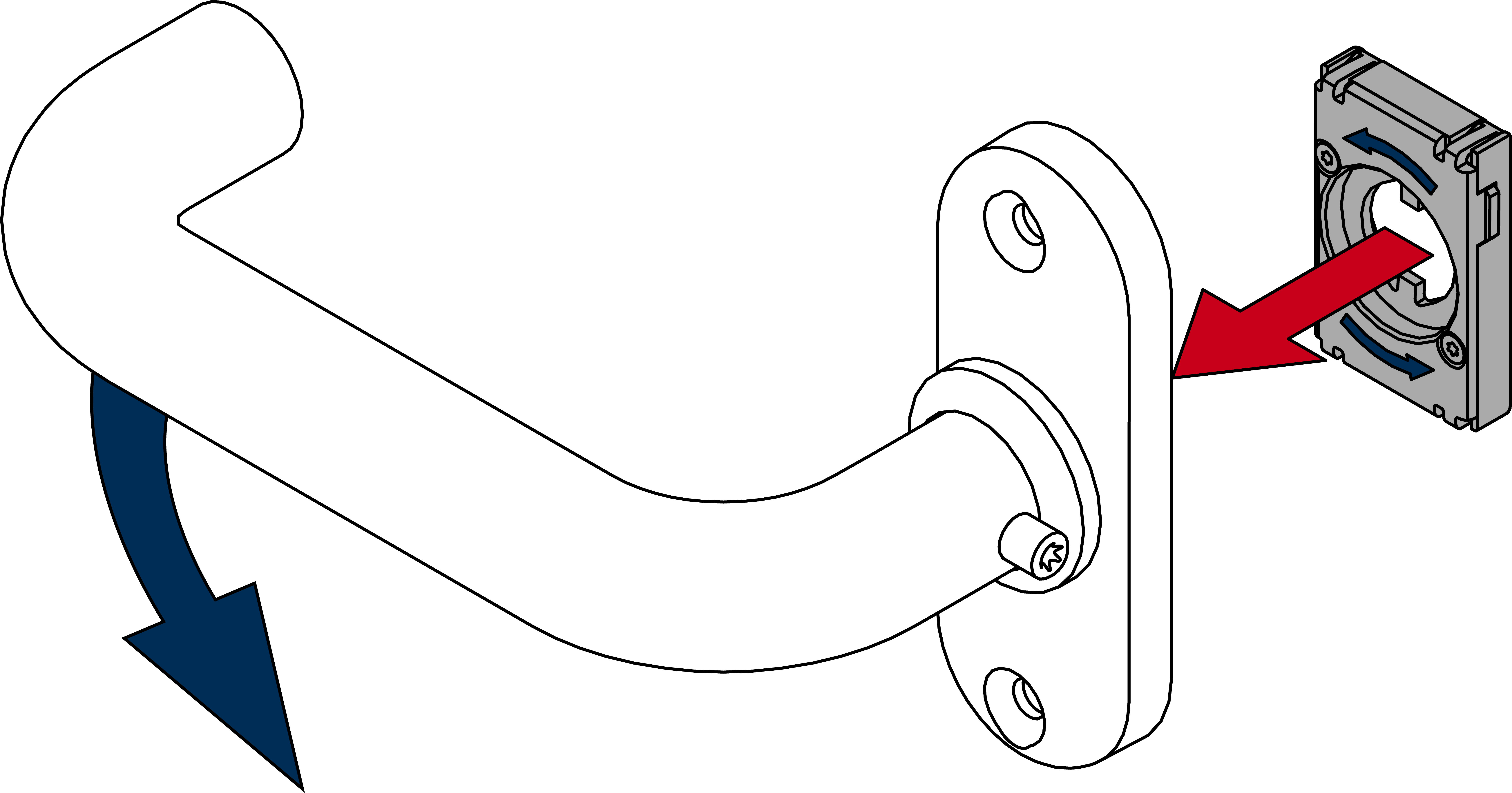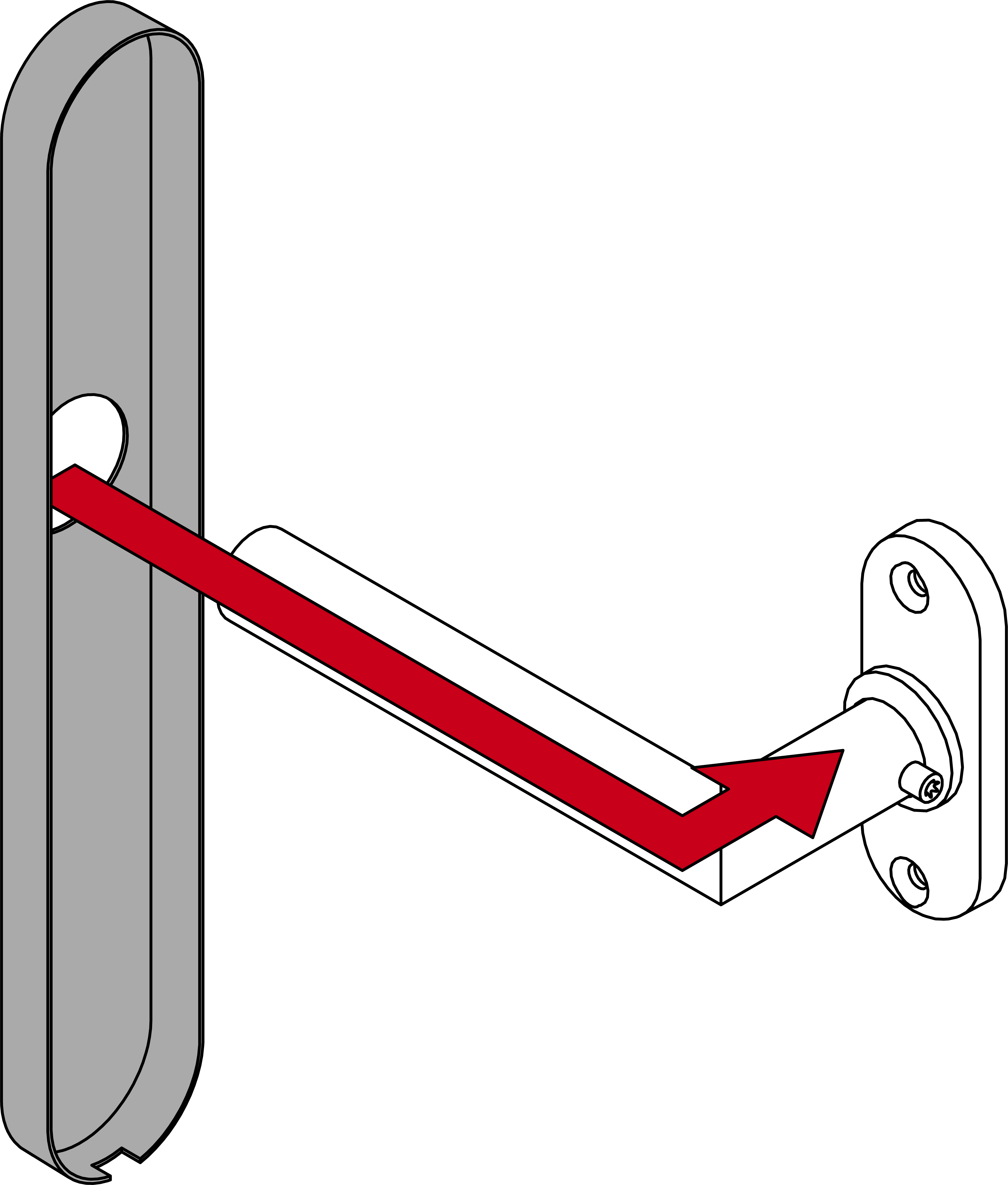 Die mittlere Befestigung ist optional. Das SmartHandle AX Advanced kann auch ohne diese Befestigung montiert werden.