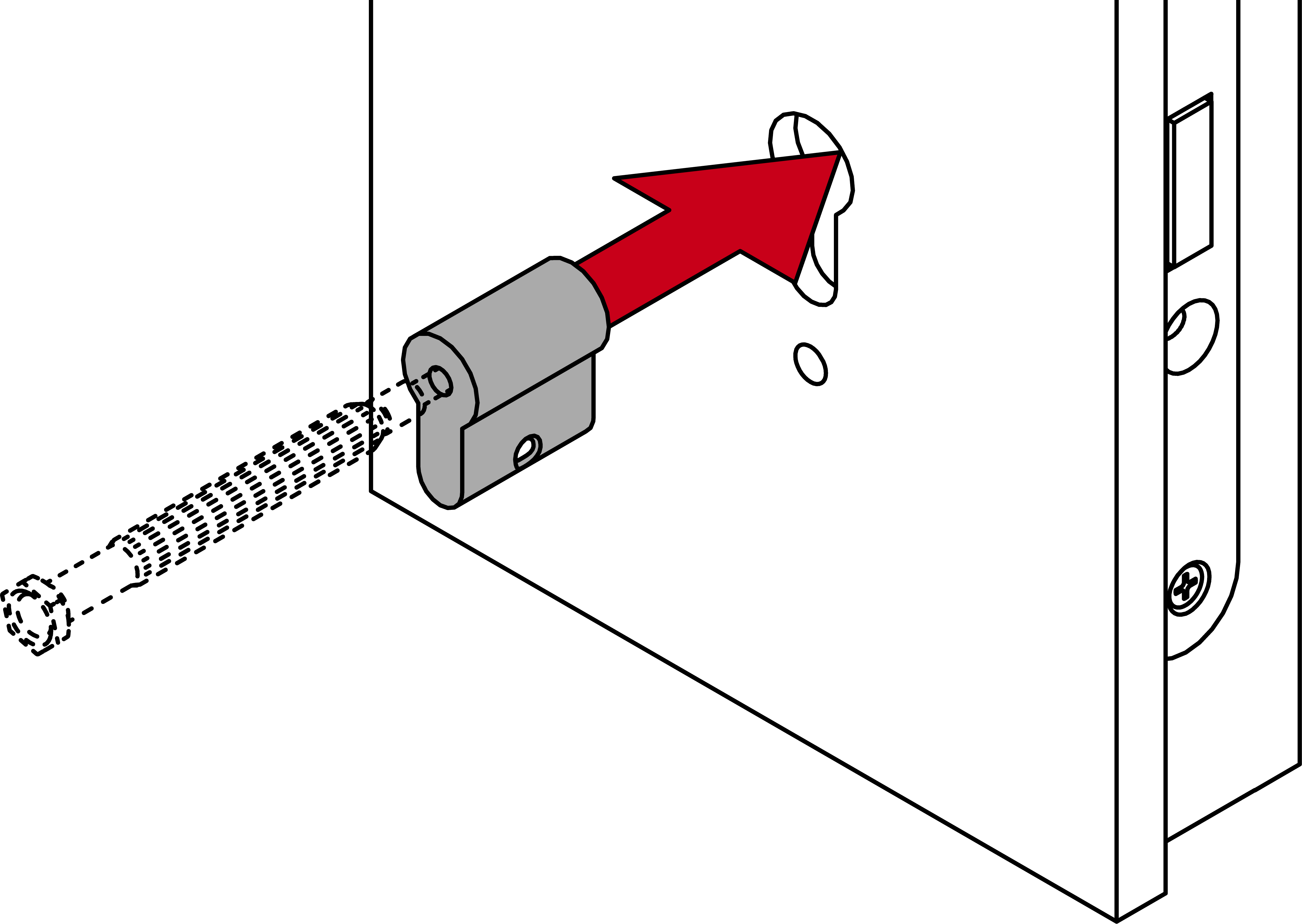 Blindzylinder mit Schraubendreher im Loch führen