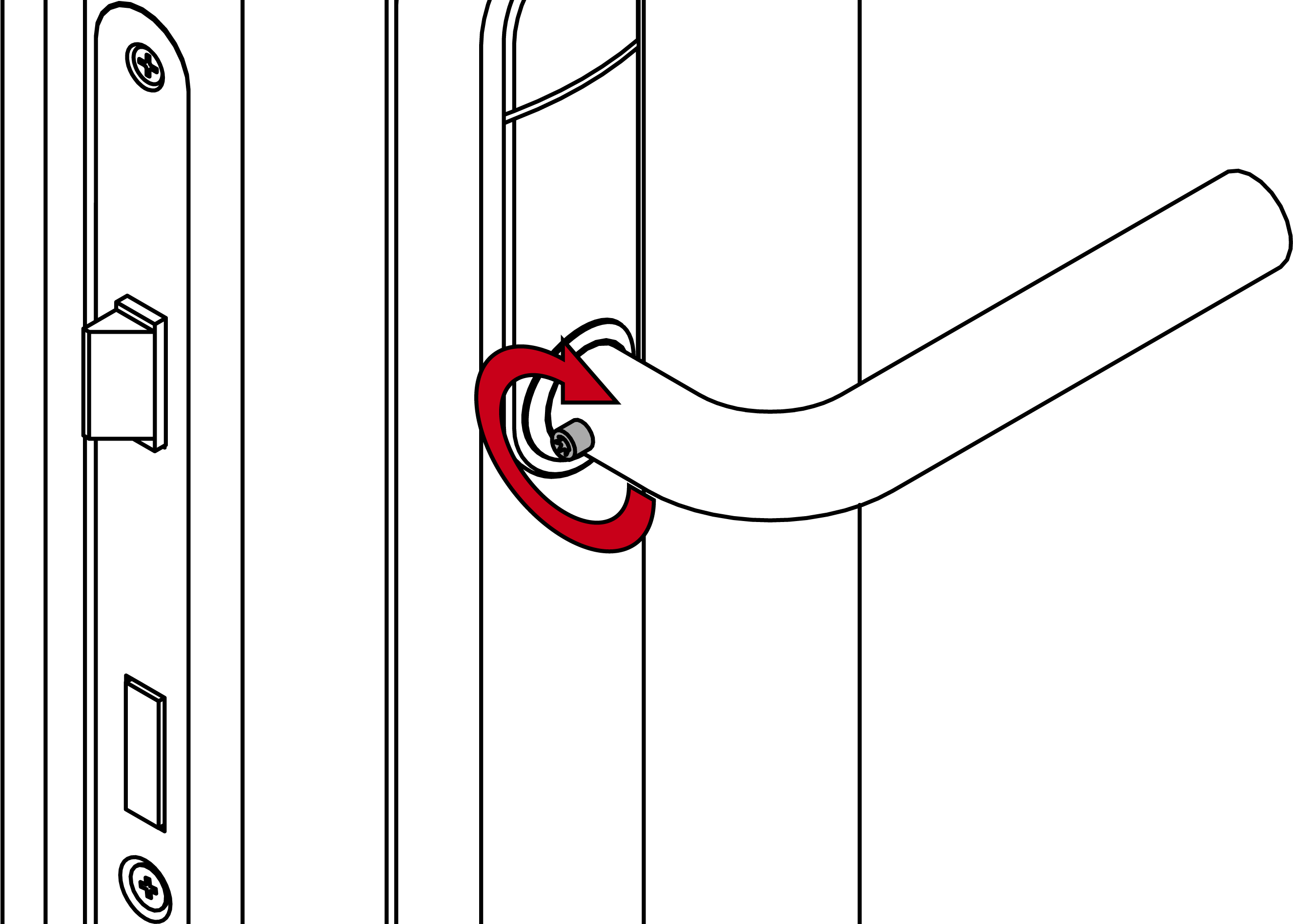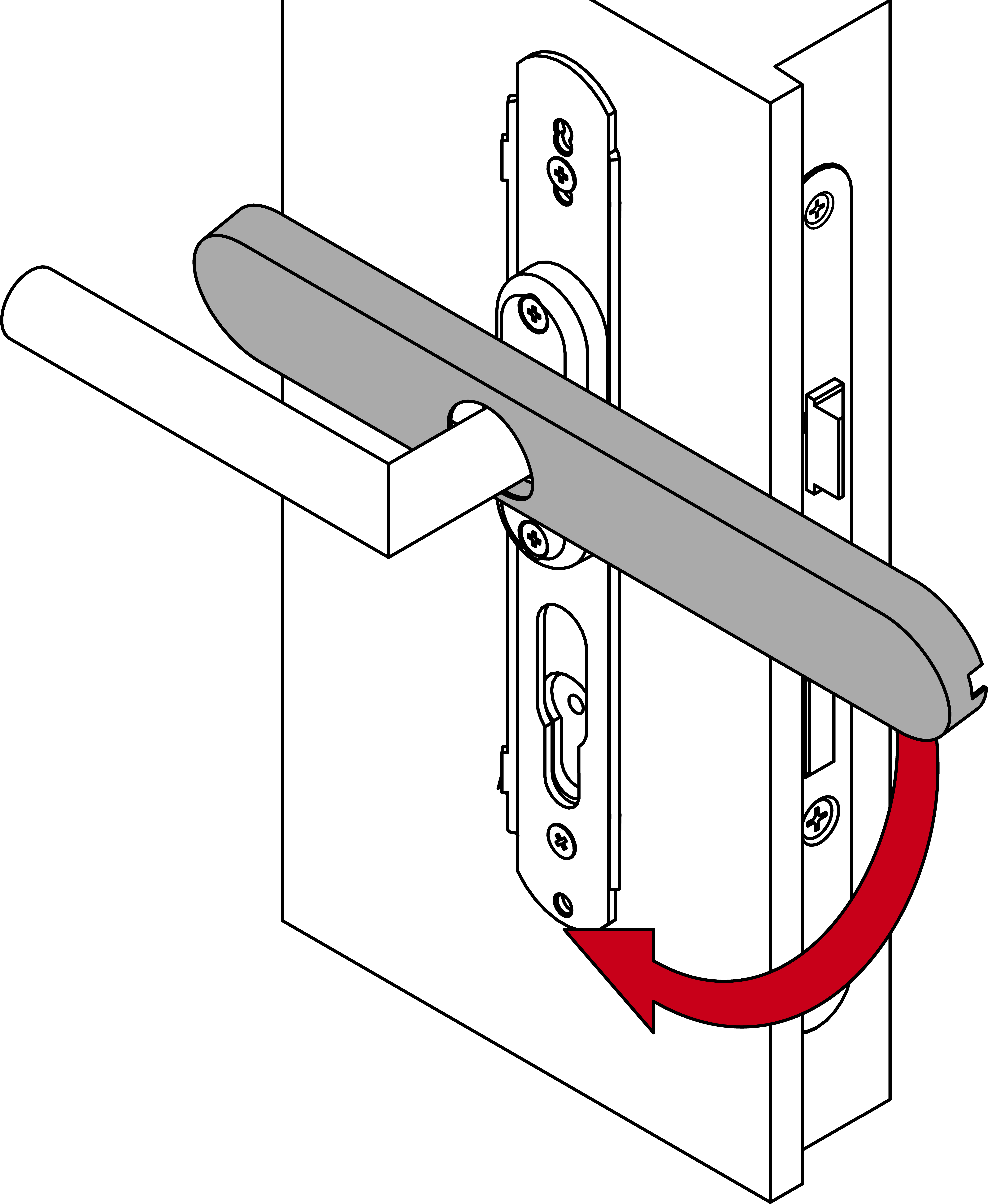 - Bestimmen Sie die gewünschte Drehrichtung Ihres Innendrückers.