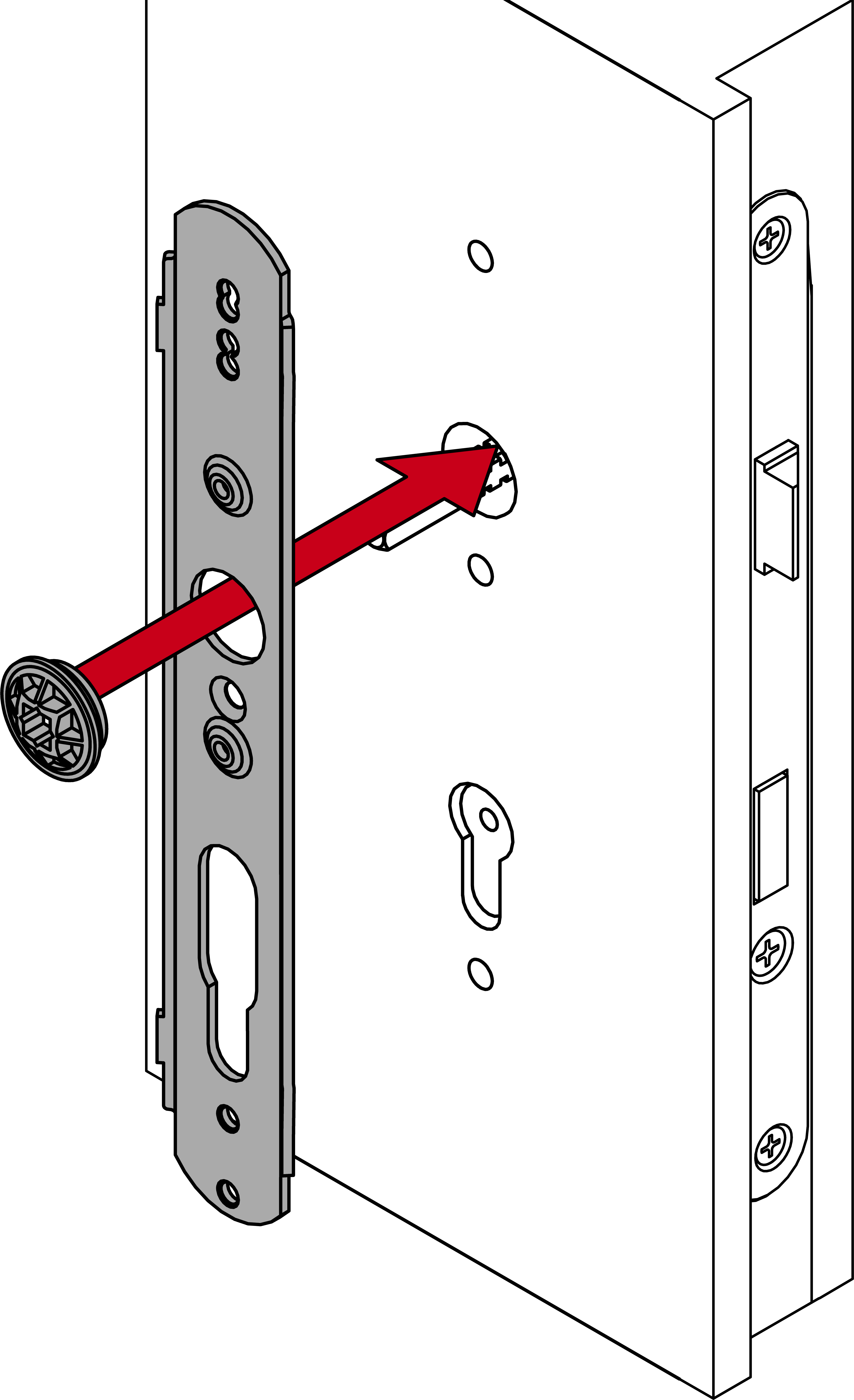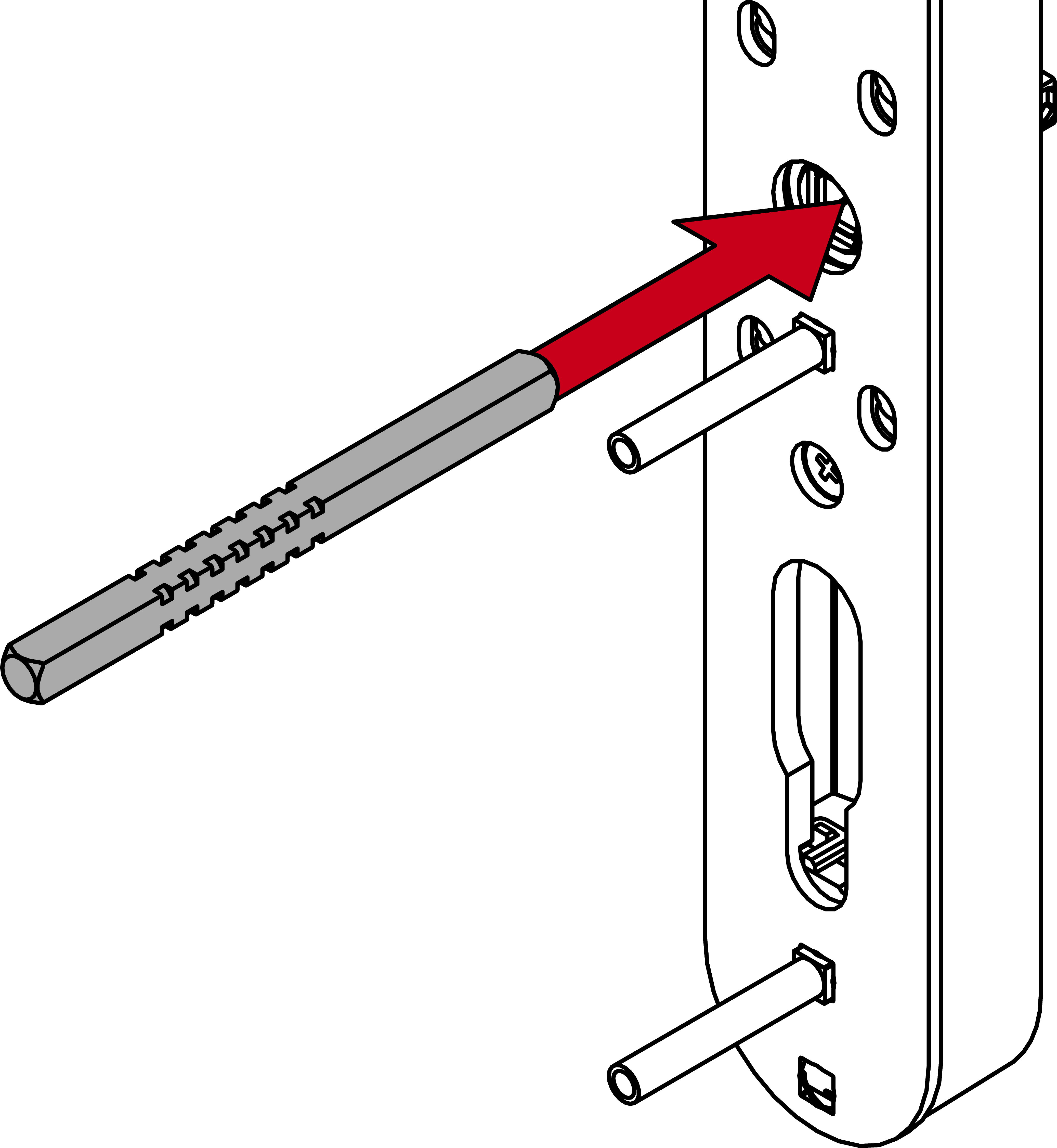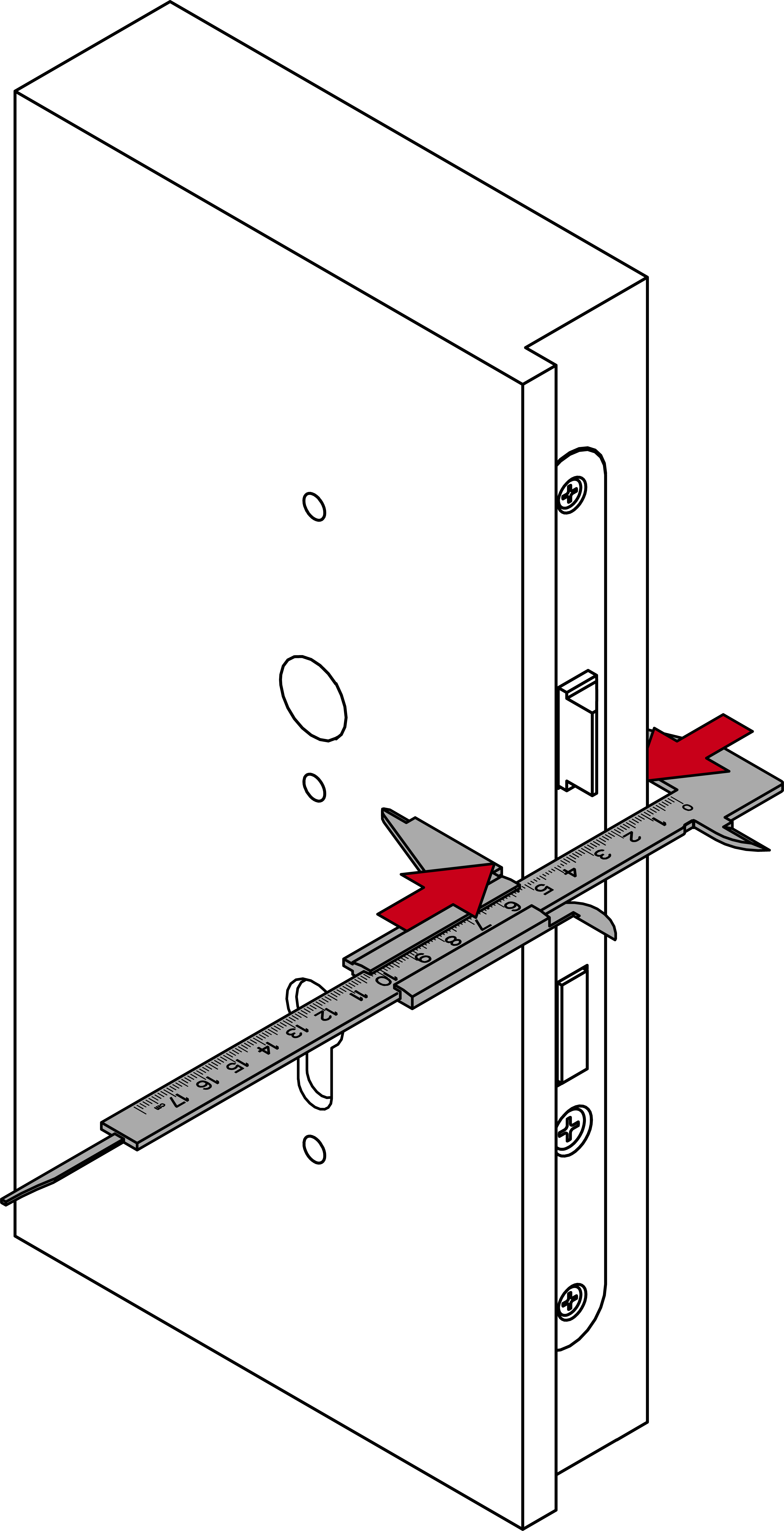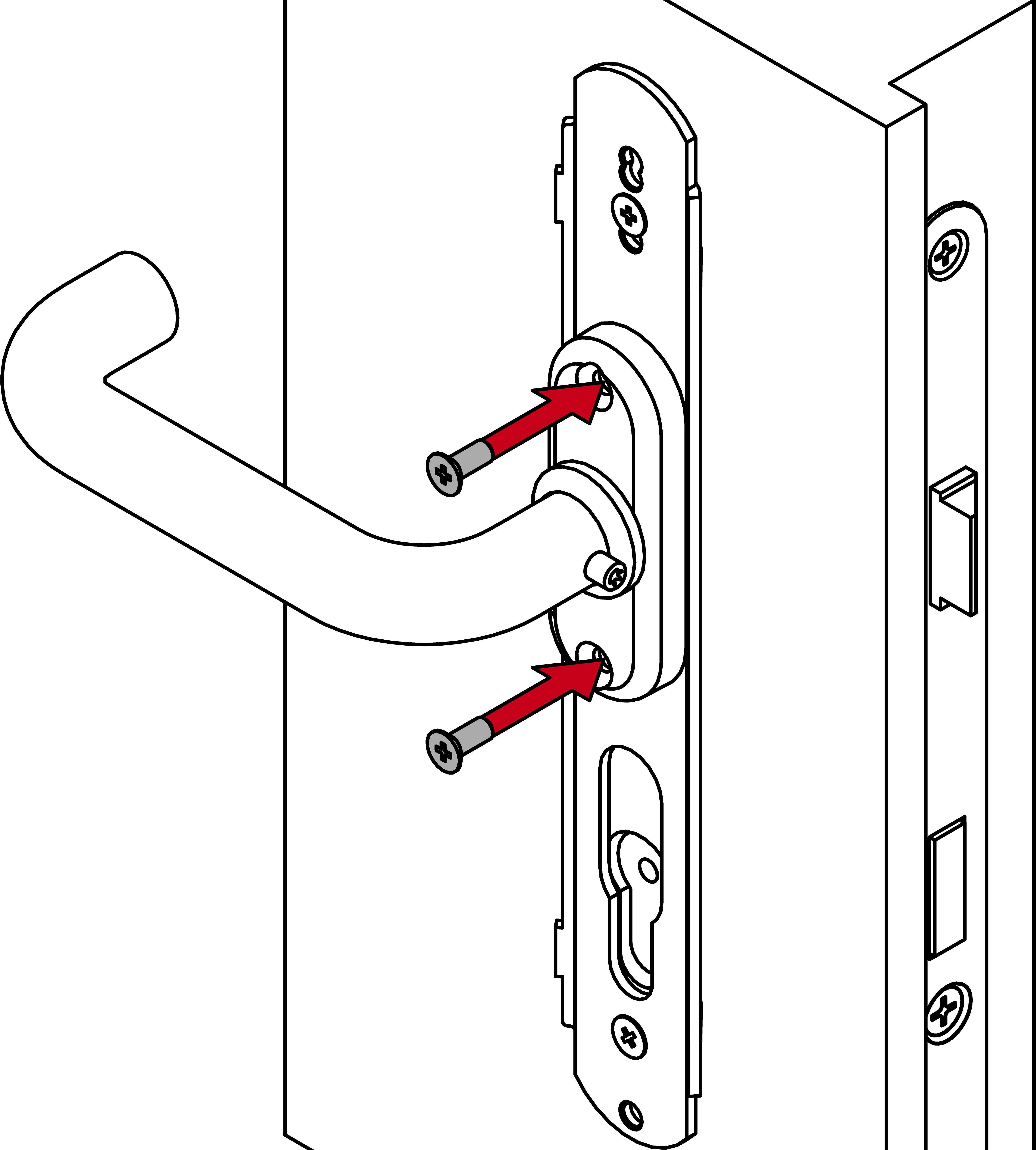 - Bestimmen Sie mit der gemessenen Türdicke die benötigten Schrauben.