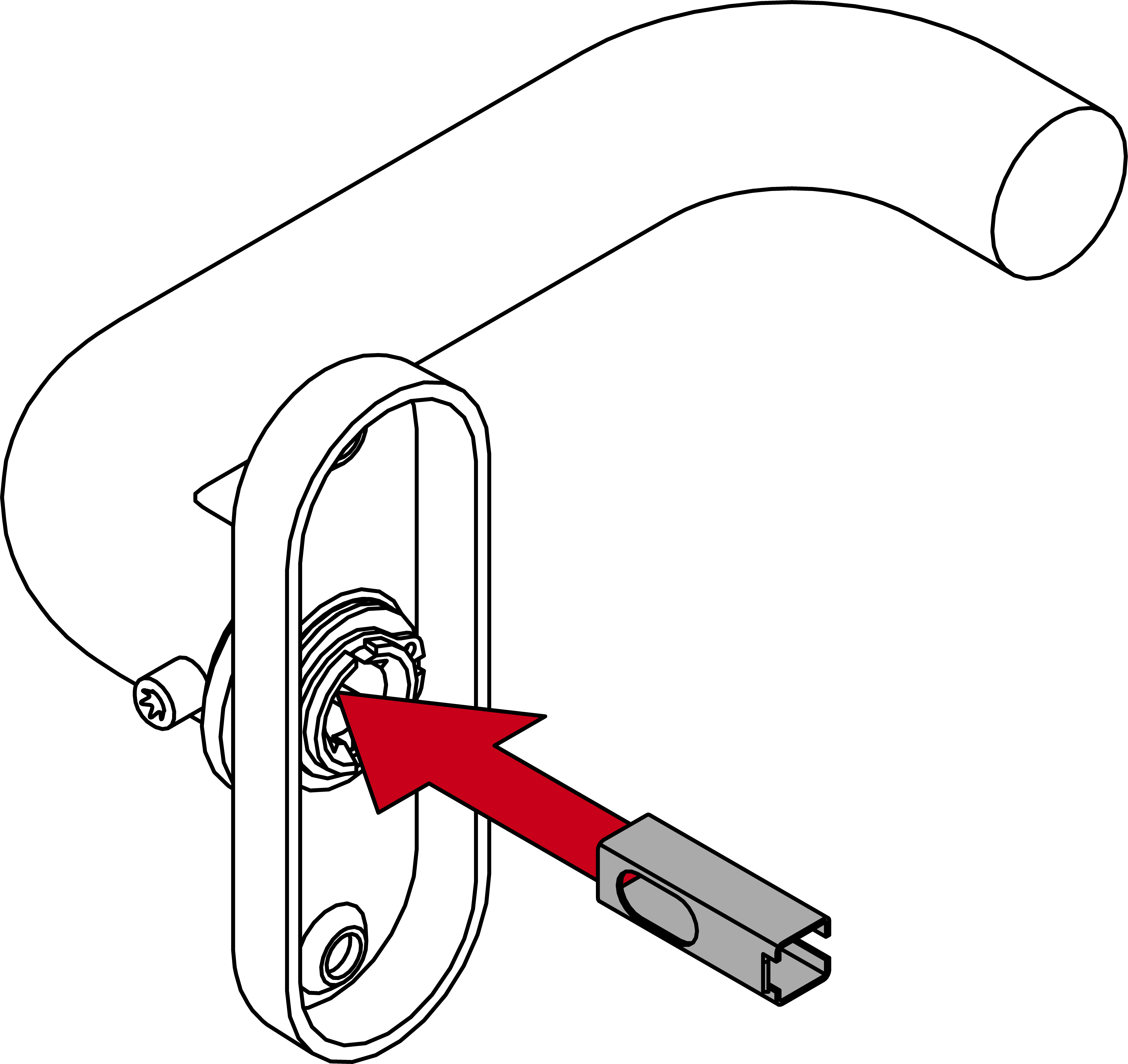 - Schrauben Sie mit der Madenschraube den Außendrücker fest (TX15, Drehmoment 5,0 Nm).