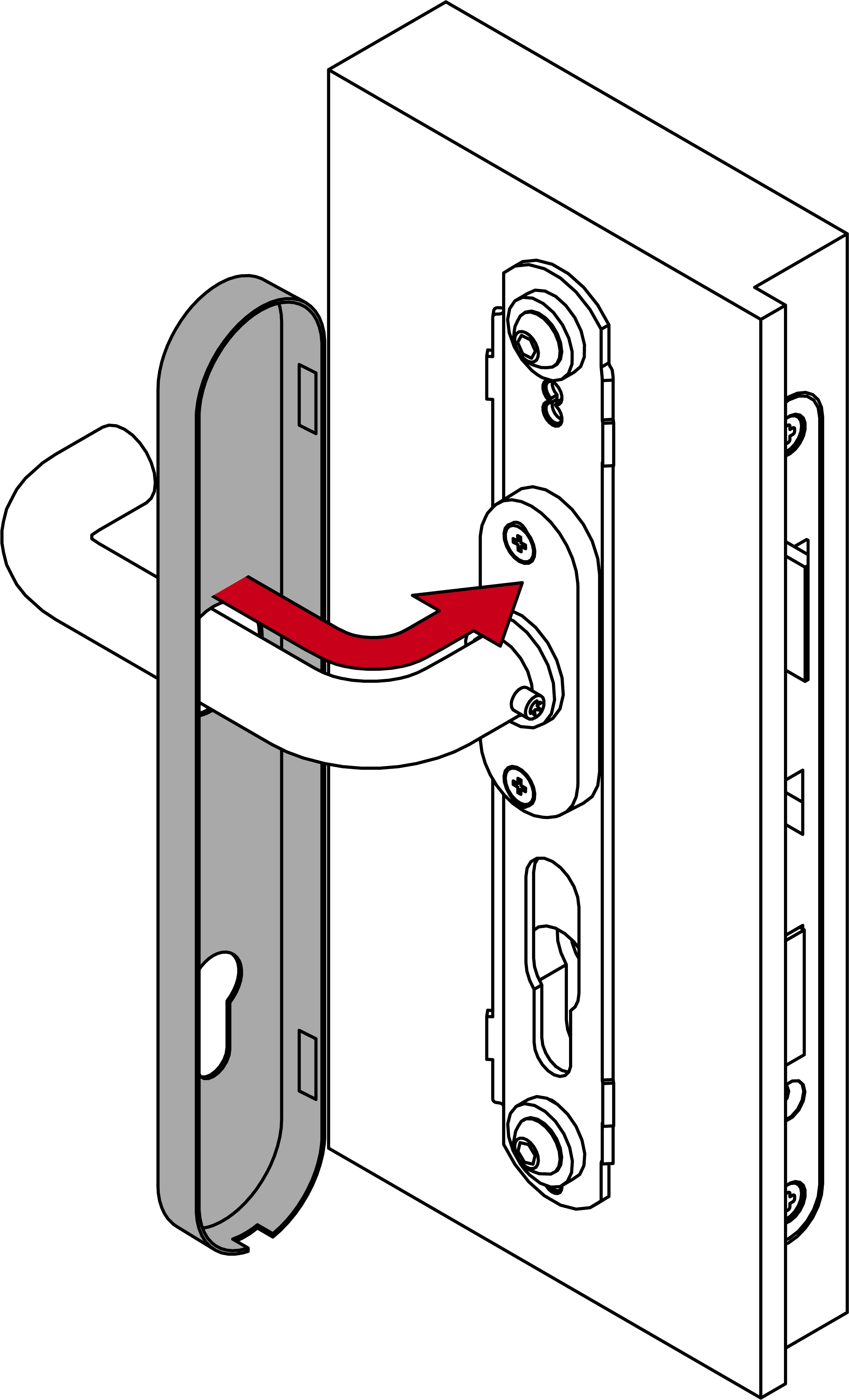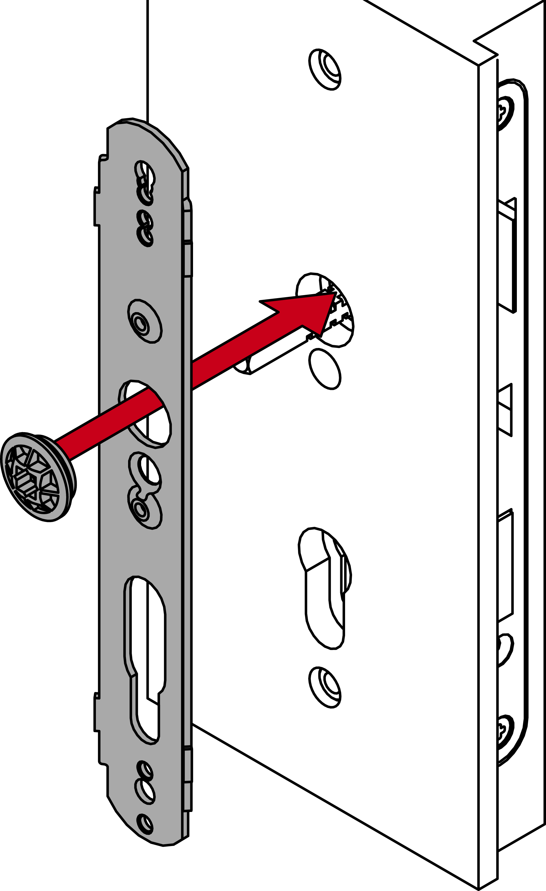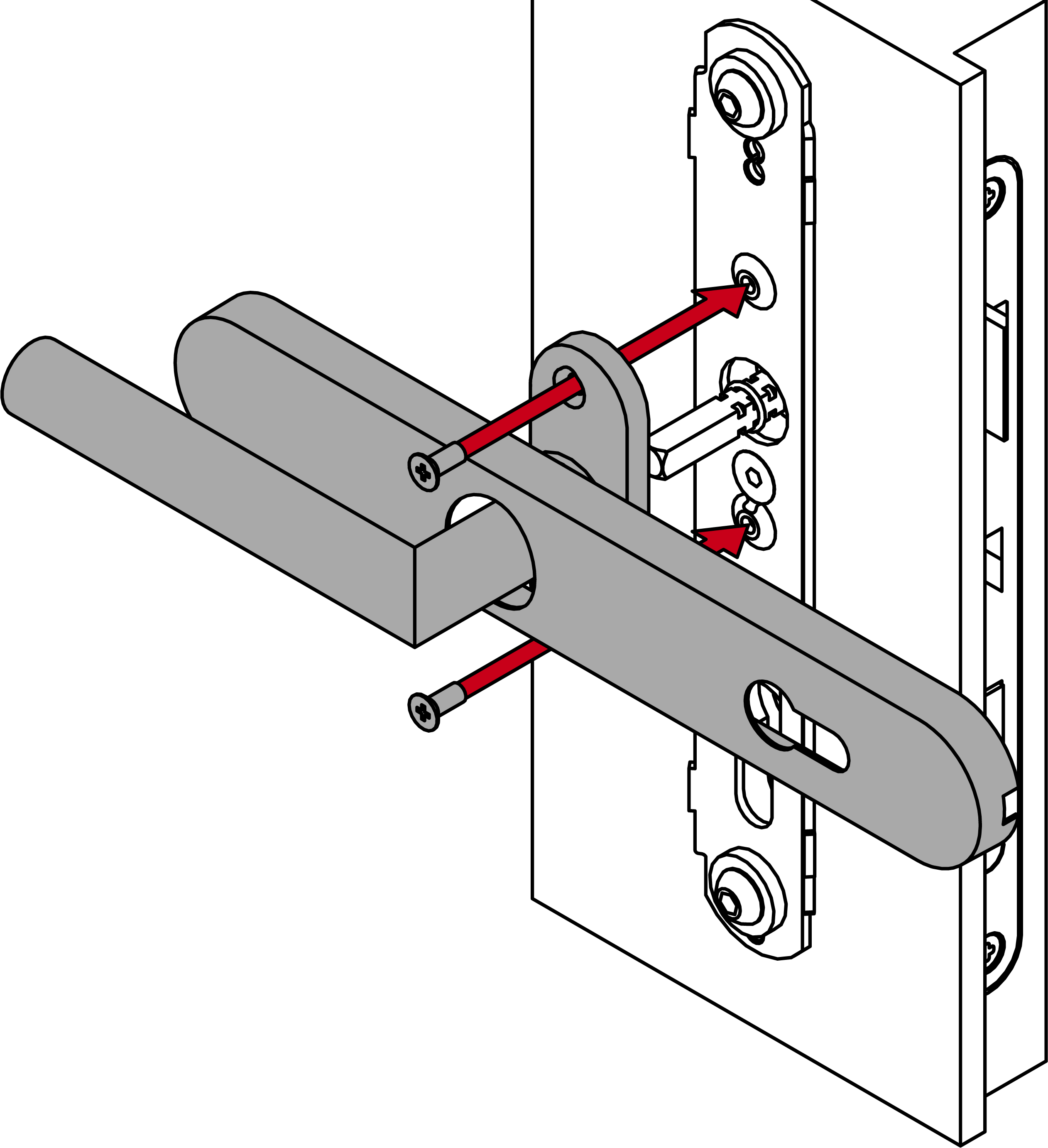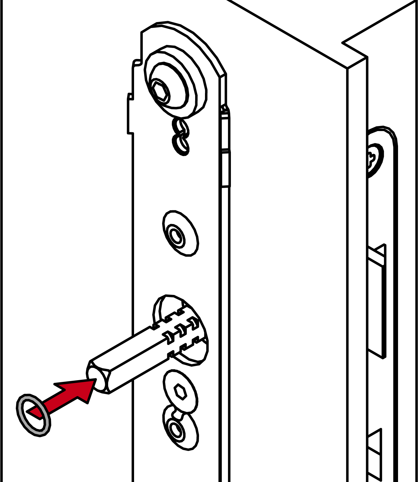 - Stecken Sie den Modulträger mit der Fixierplatte in die Tür-Außenseite.