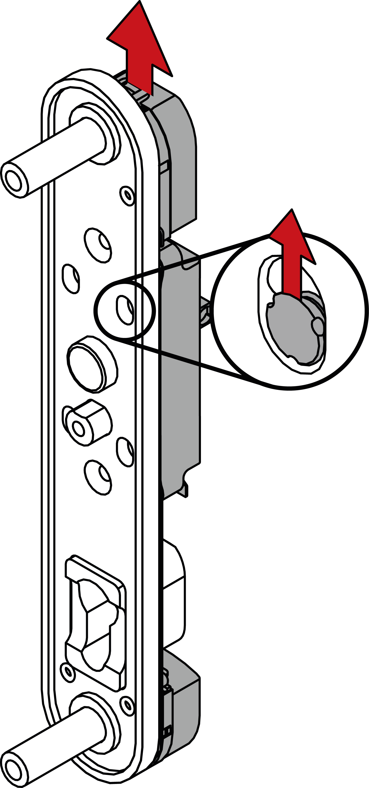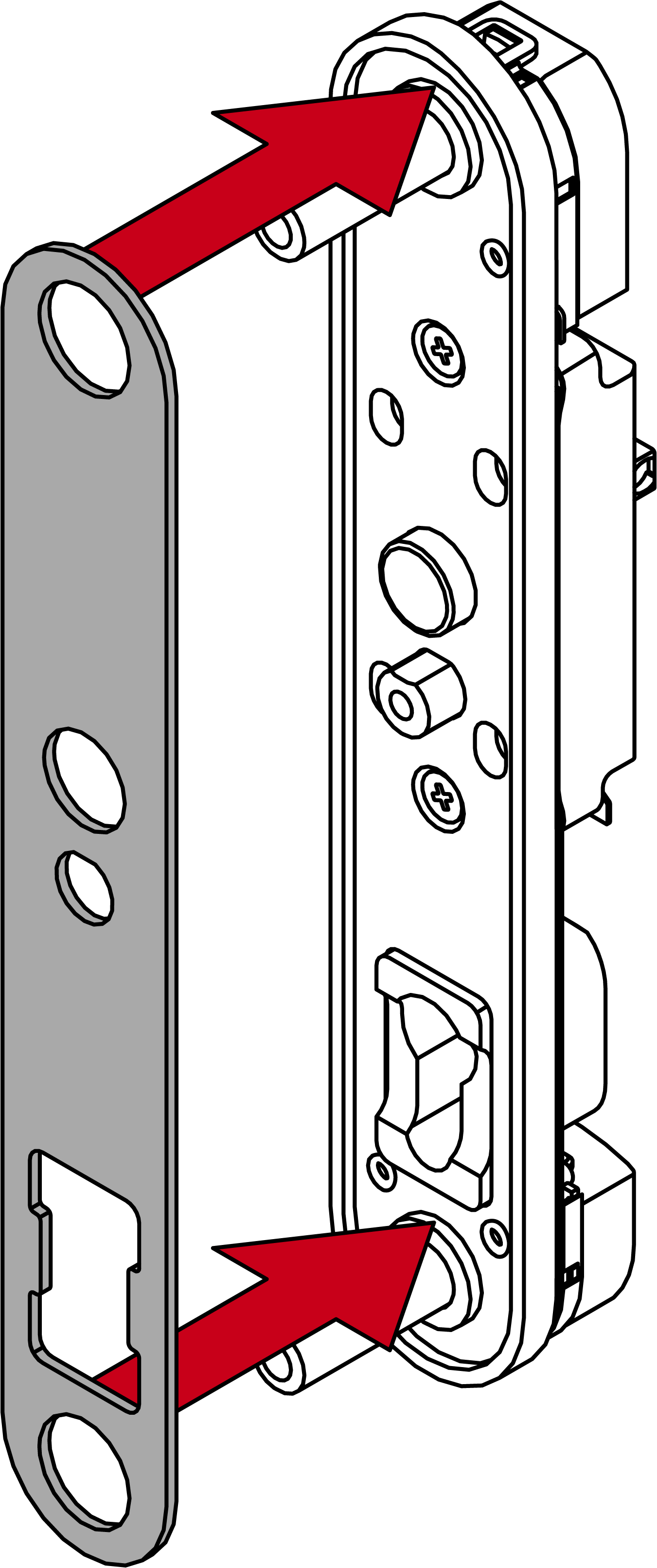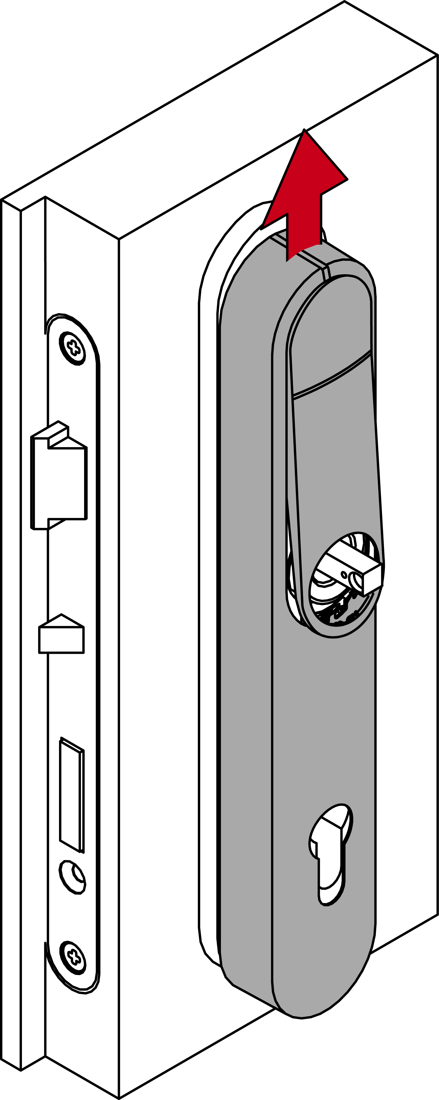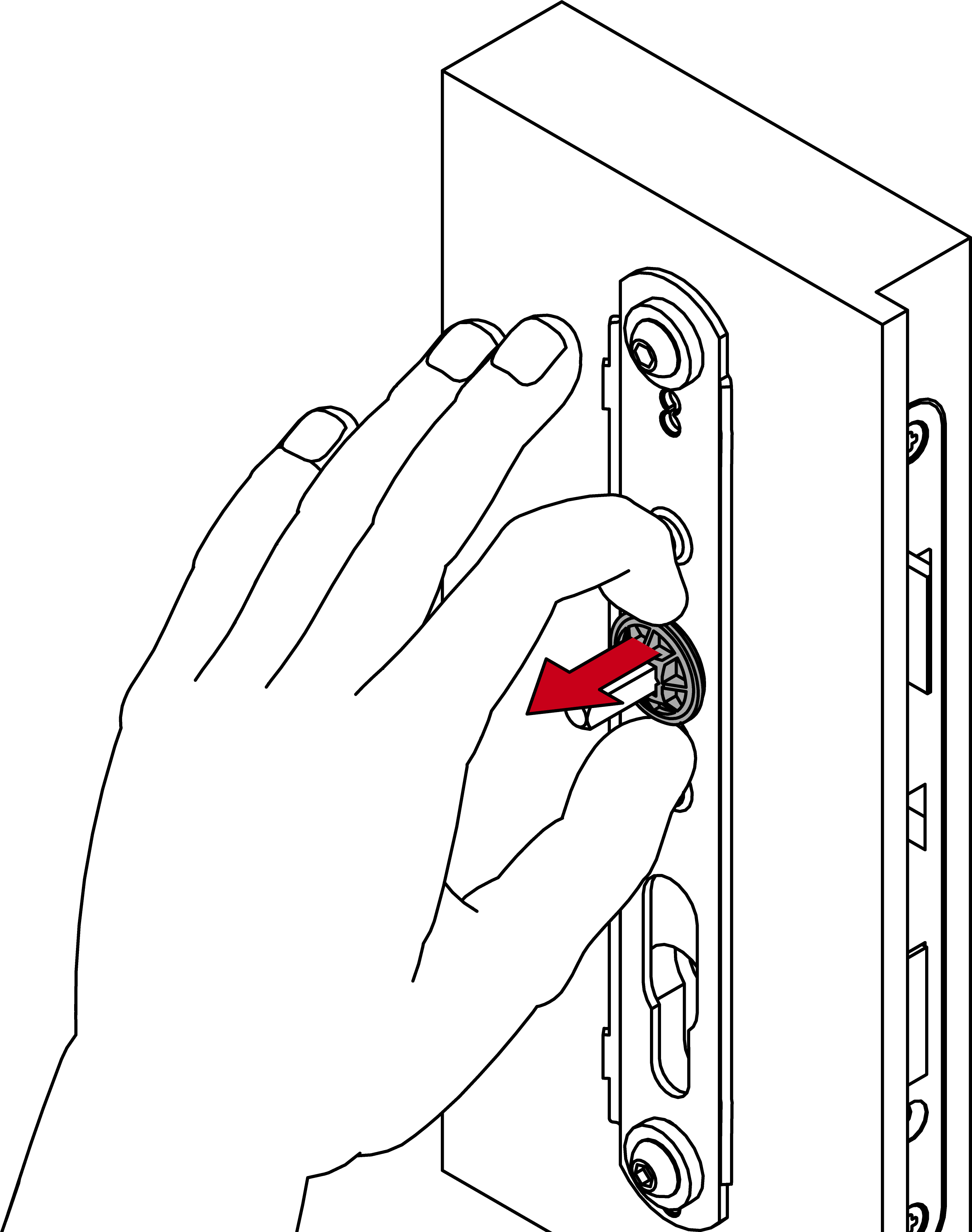 - Stecken Sie den Modulträger mit der Fixierplatte in die Tür-Außenseite.