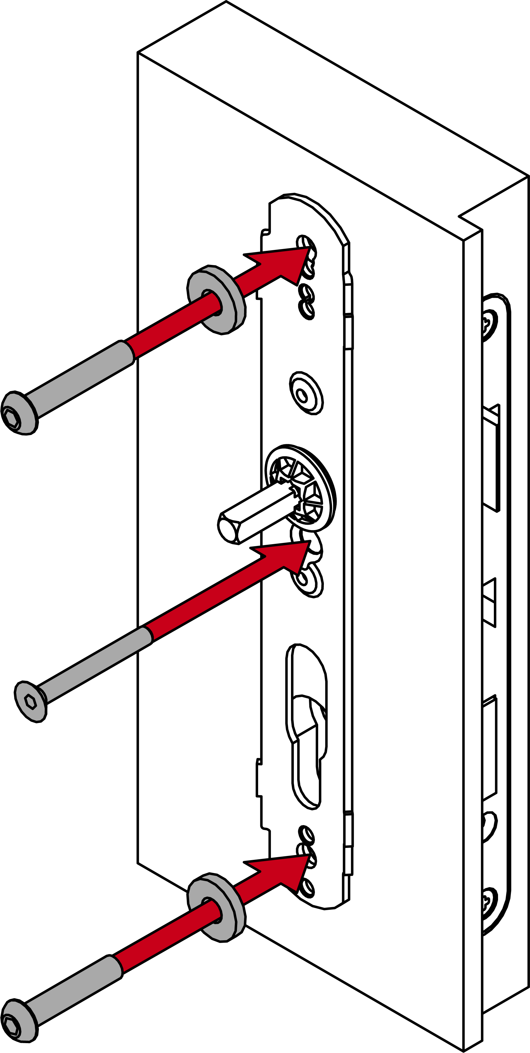 - Bestimmen Sie mit der gemessenen Türdicke die benötigten Schrauben.