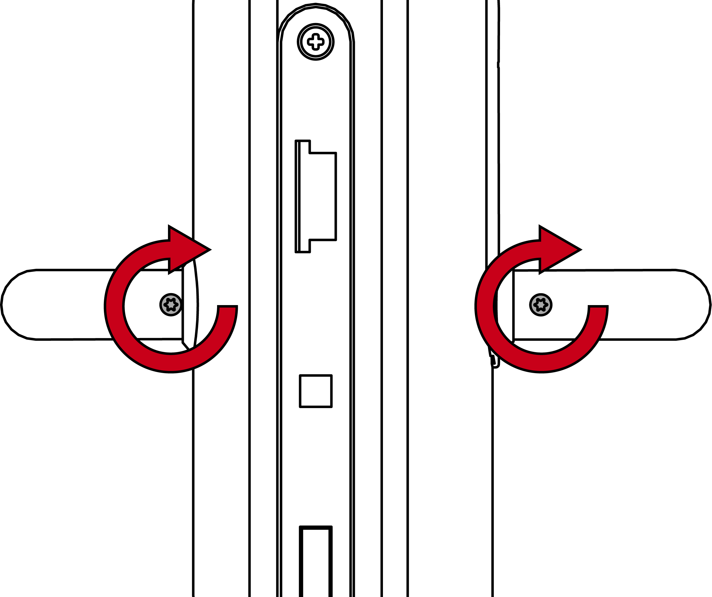- Schrauben Sie mit den Madenschrauben beide Drücker fest (TX15, Drehmoment 5,0 Nm).