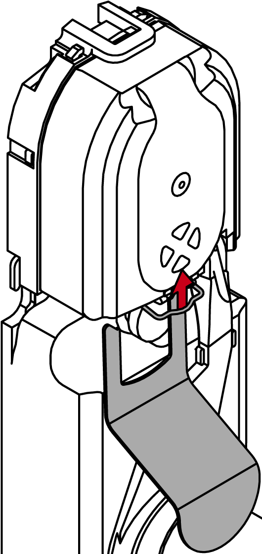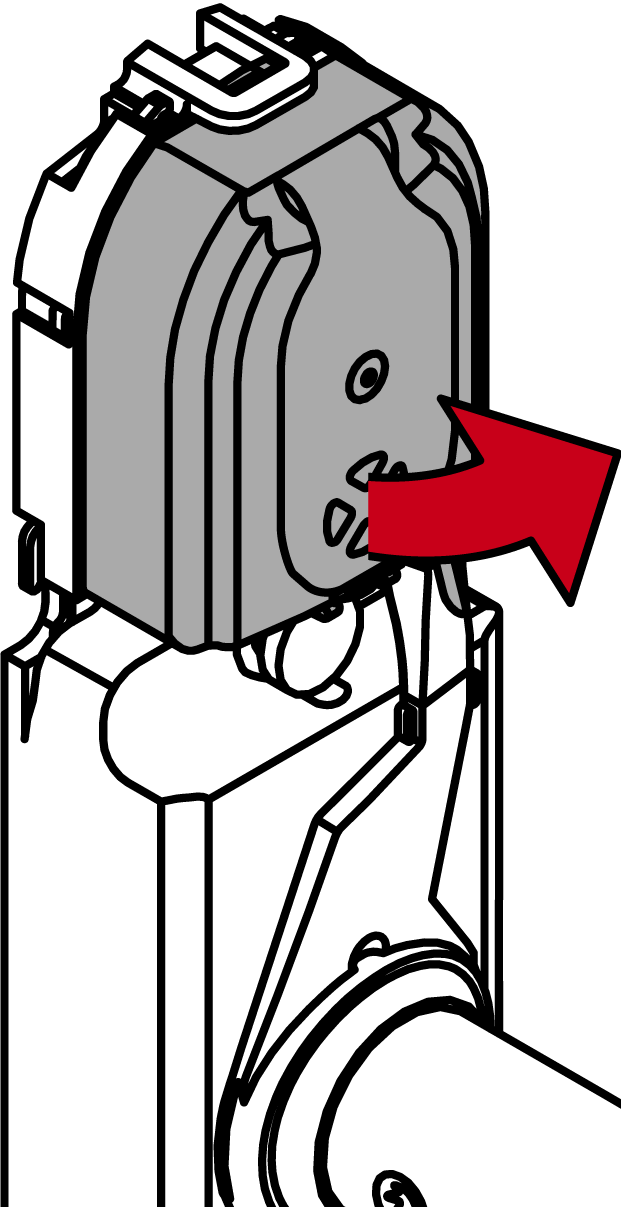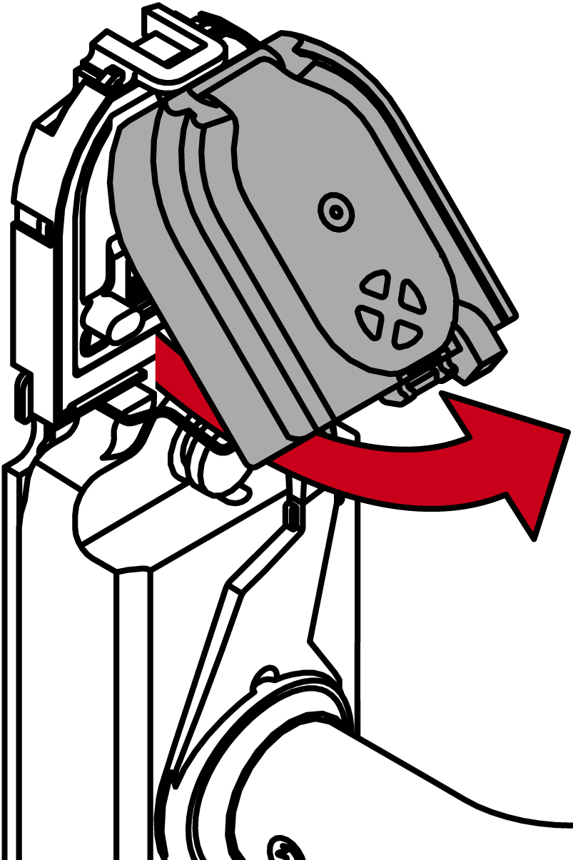 - Haak met het speciale gereedschap de klem van de lezermodule weer vast.
