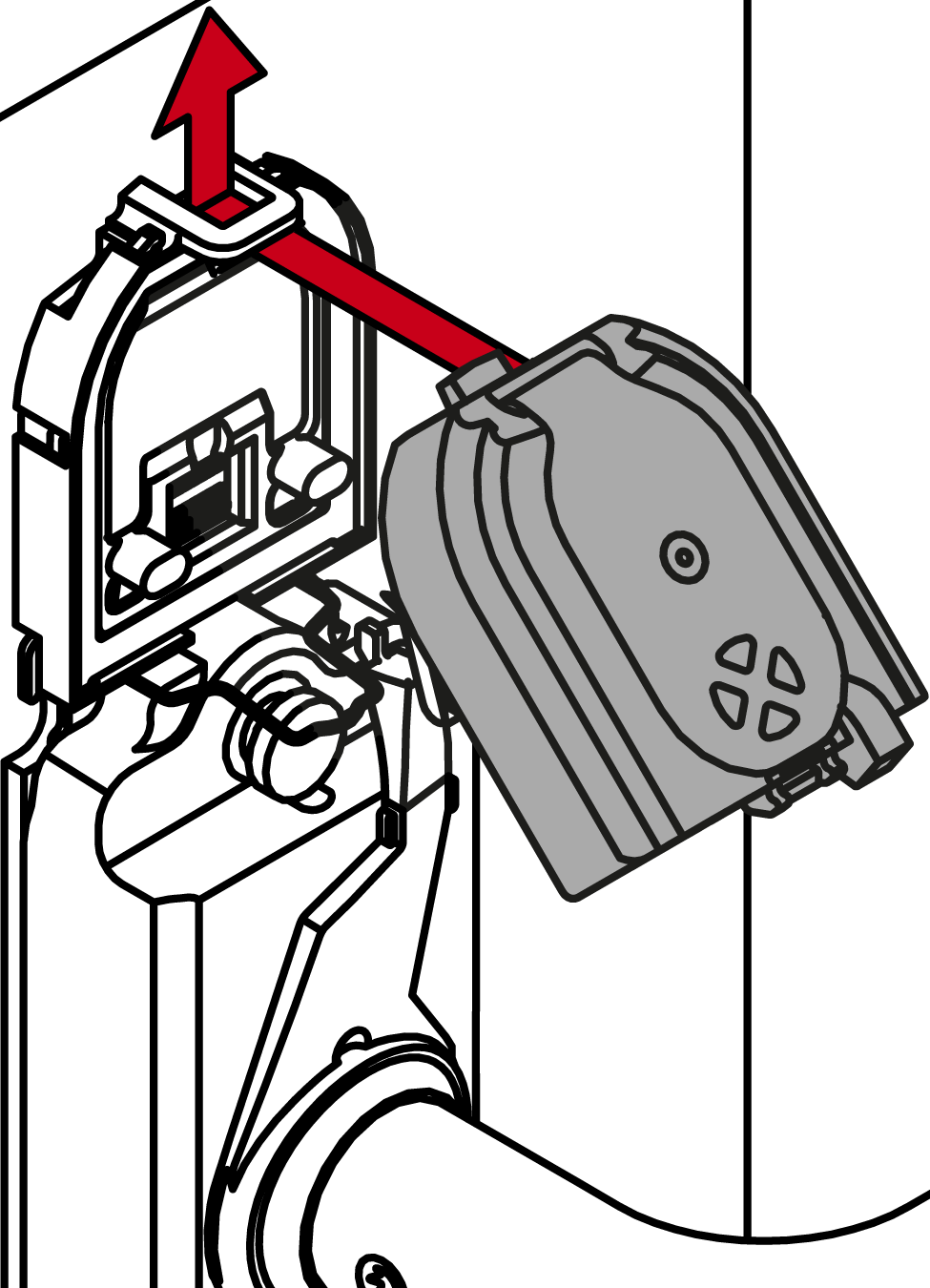 - Steek het speciale gereedschap in de cover-inlay aan de elektronicazijde.
