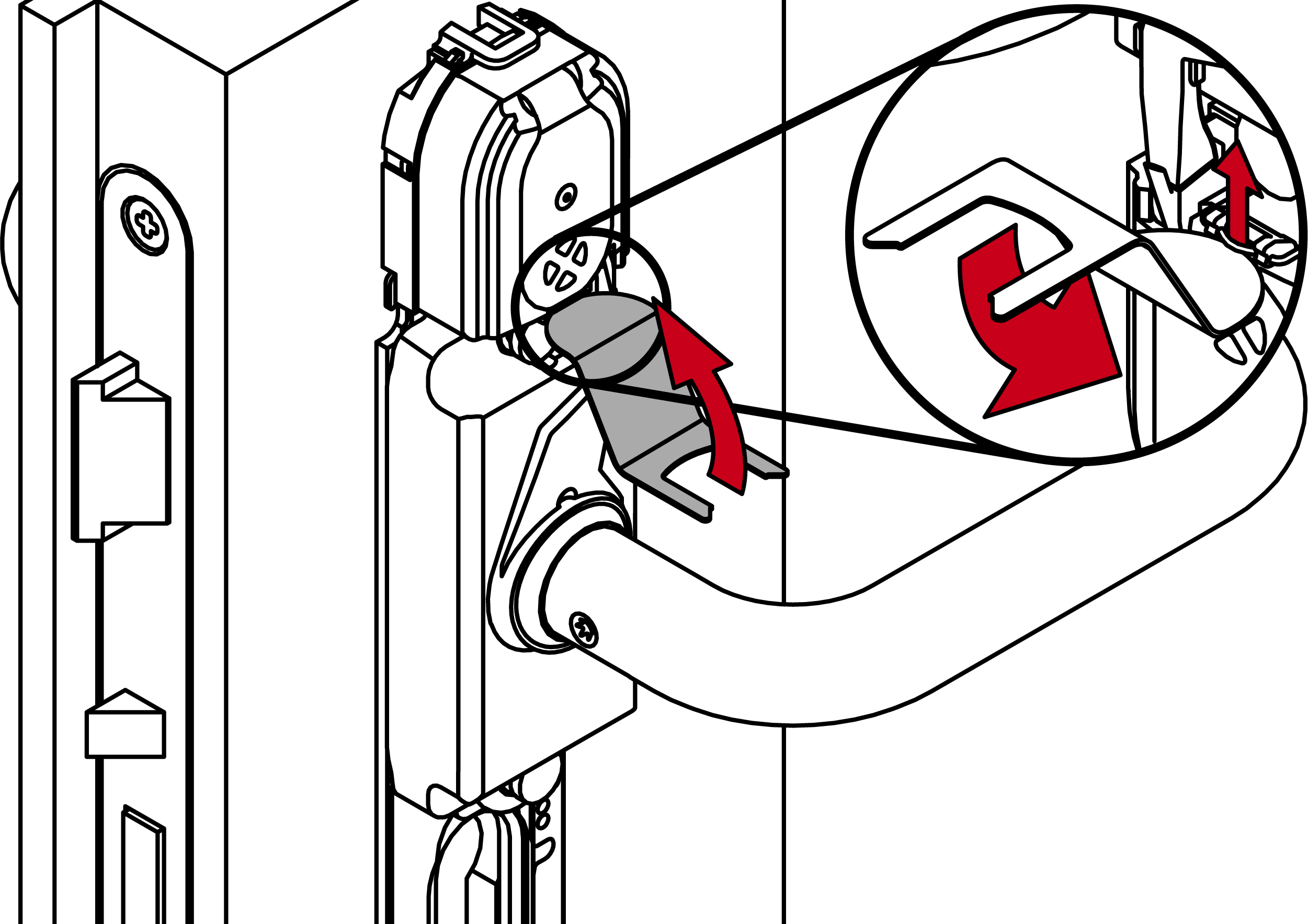 - Duw de cover tegen de deur en schuif hem tegelijkertijd omhoog.