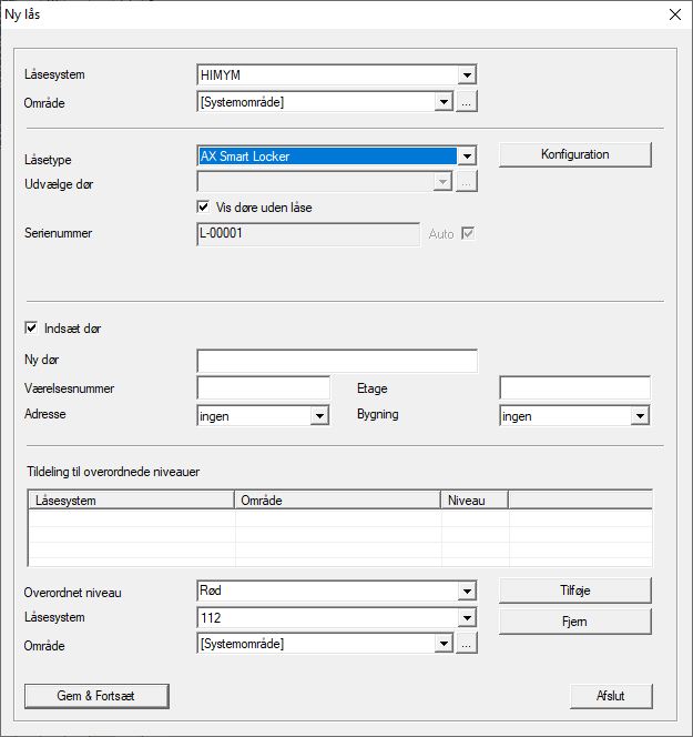 Programmering - SmartLocker AX LSM åbnet.Med vinduet åbnes Ny lås.I Låsetype vælges indtastningen AX SmartLocker.Programmér SmartLocker AX.SmartLocker AX programmeret.