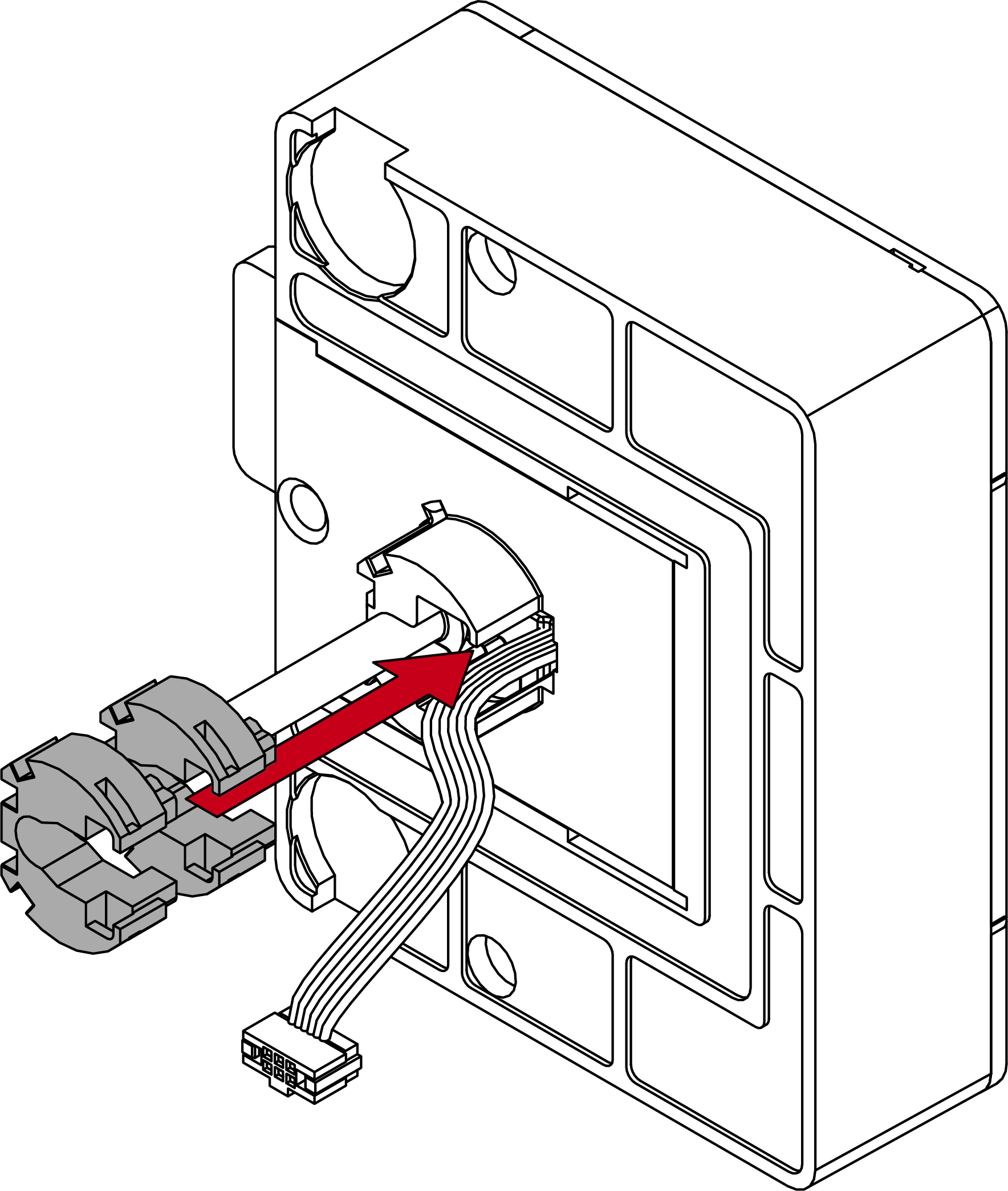 - Leg de overtollige kabel in de sleuf naast de printplaat.