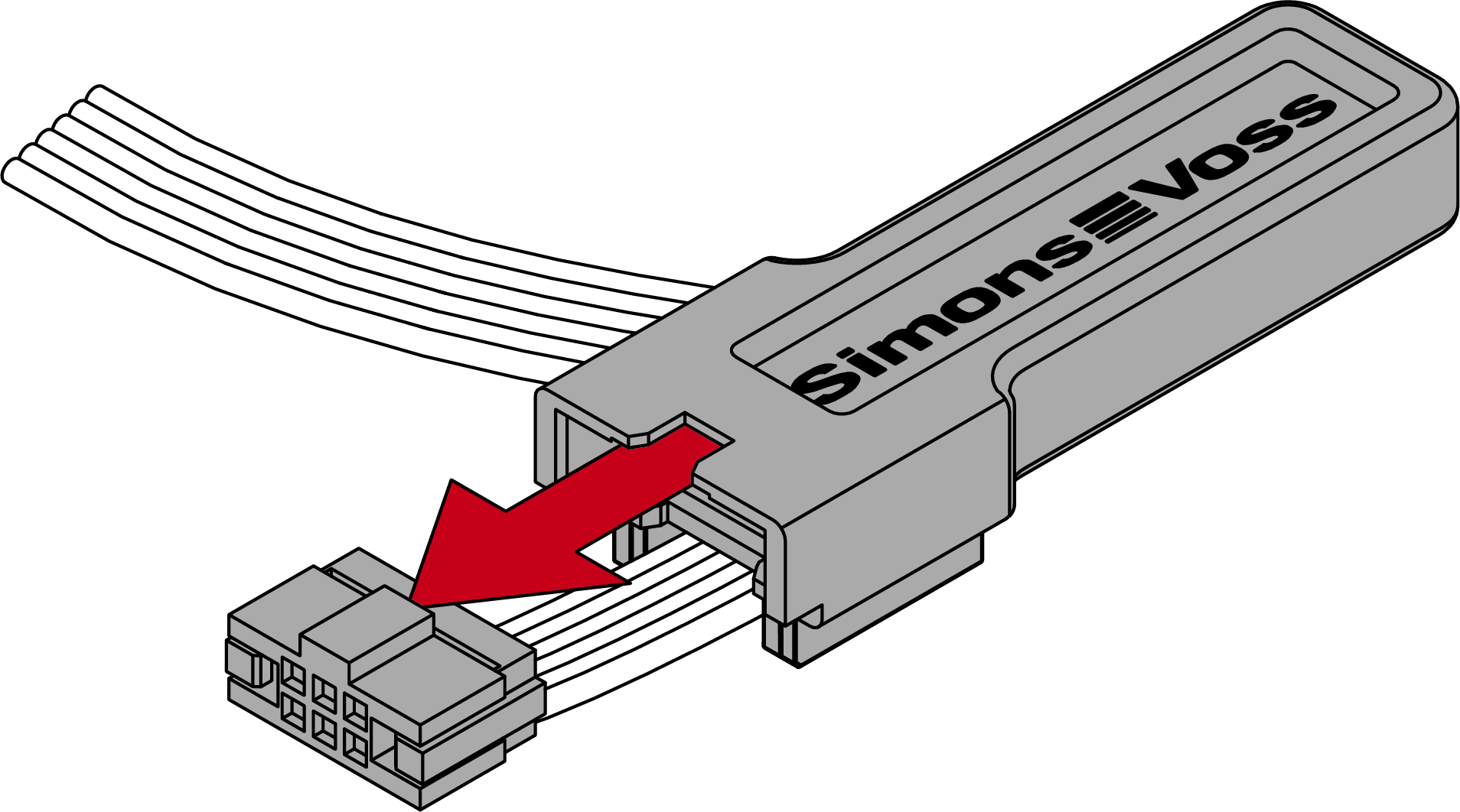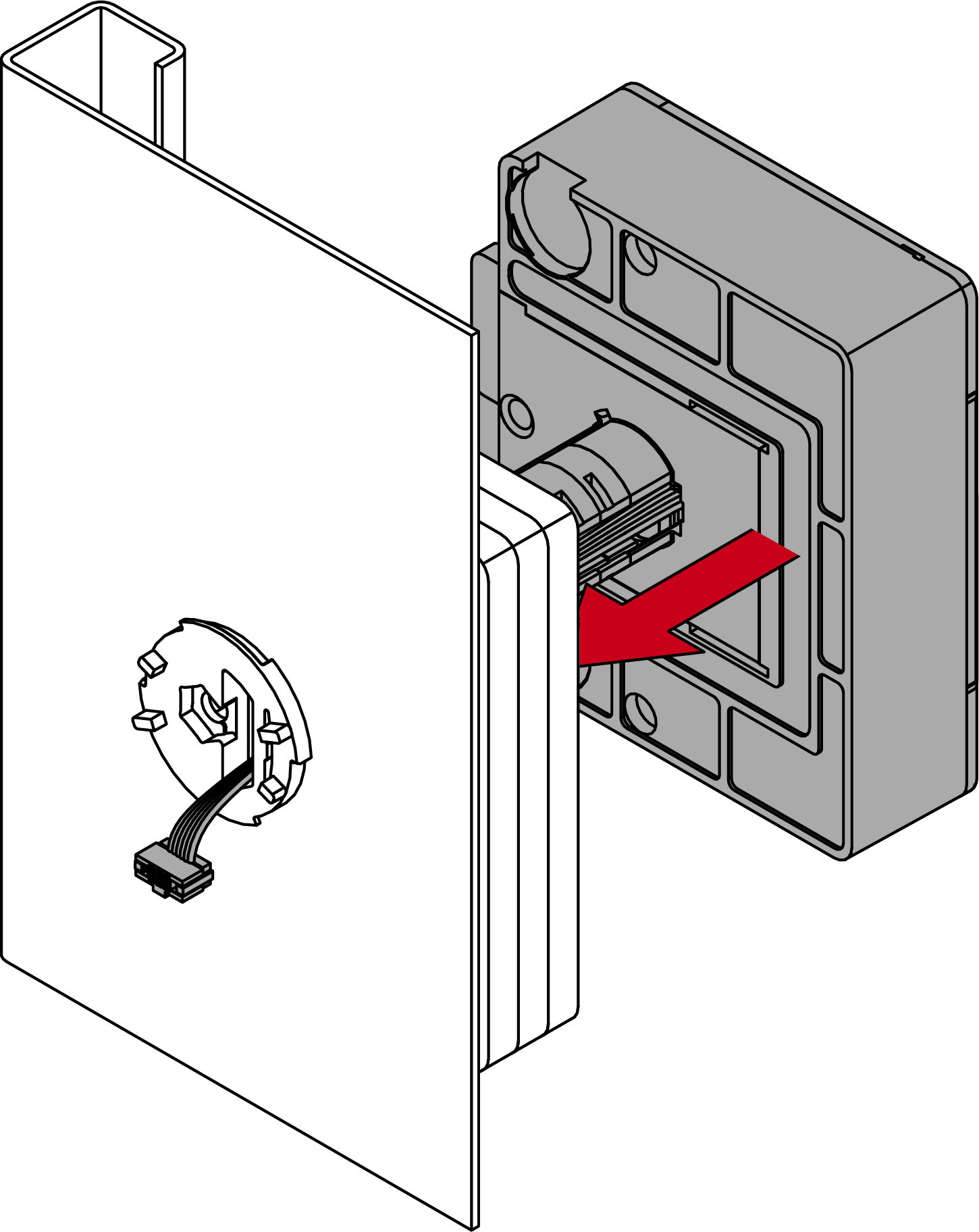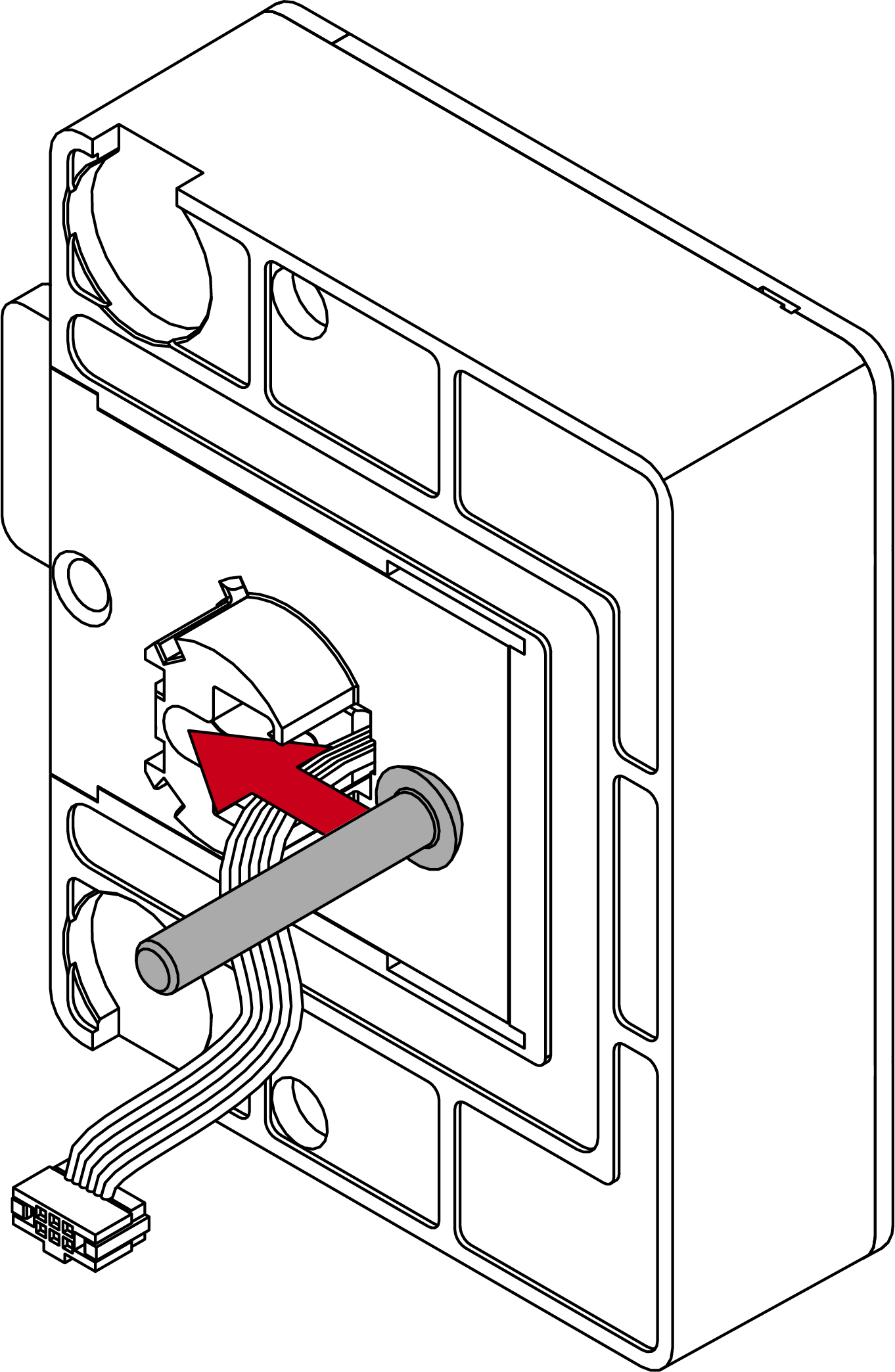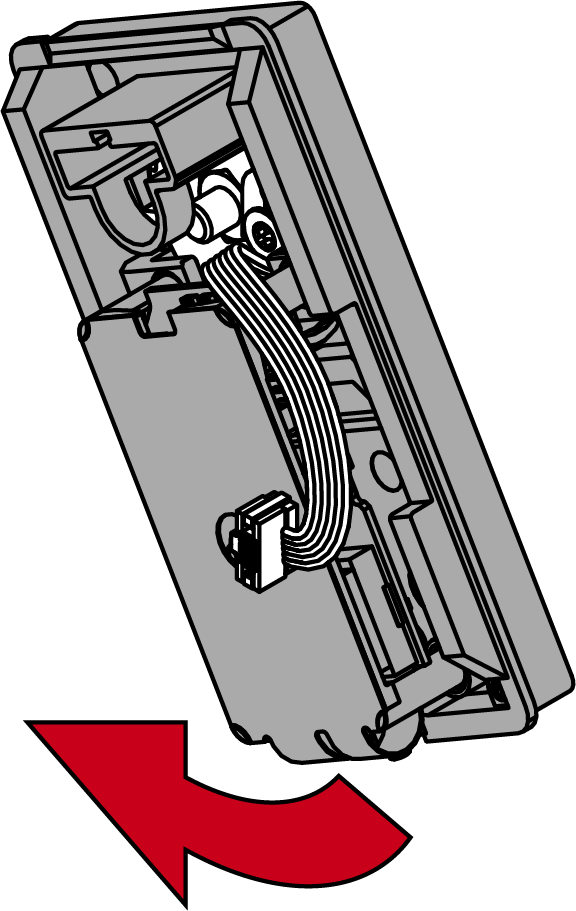 - Steek de stekker met het speciale gereedschap in de aansluiting met het lipje in de richting van de printplaat.