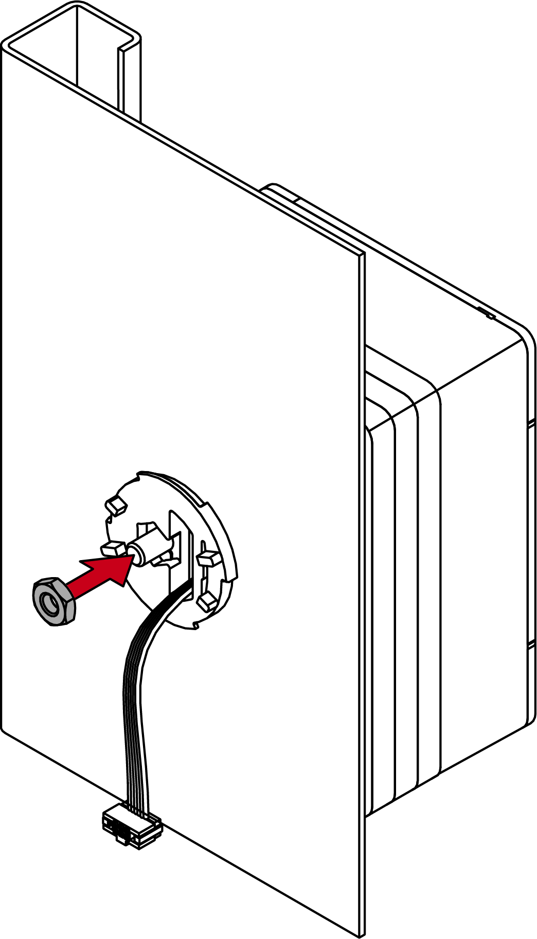 - Steek de bus in het D-gat (de opening voor de moer wijst naar de deurrand).