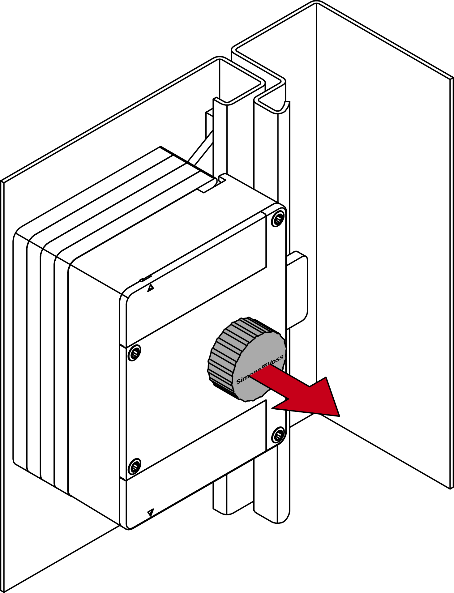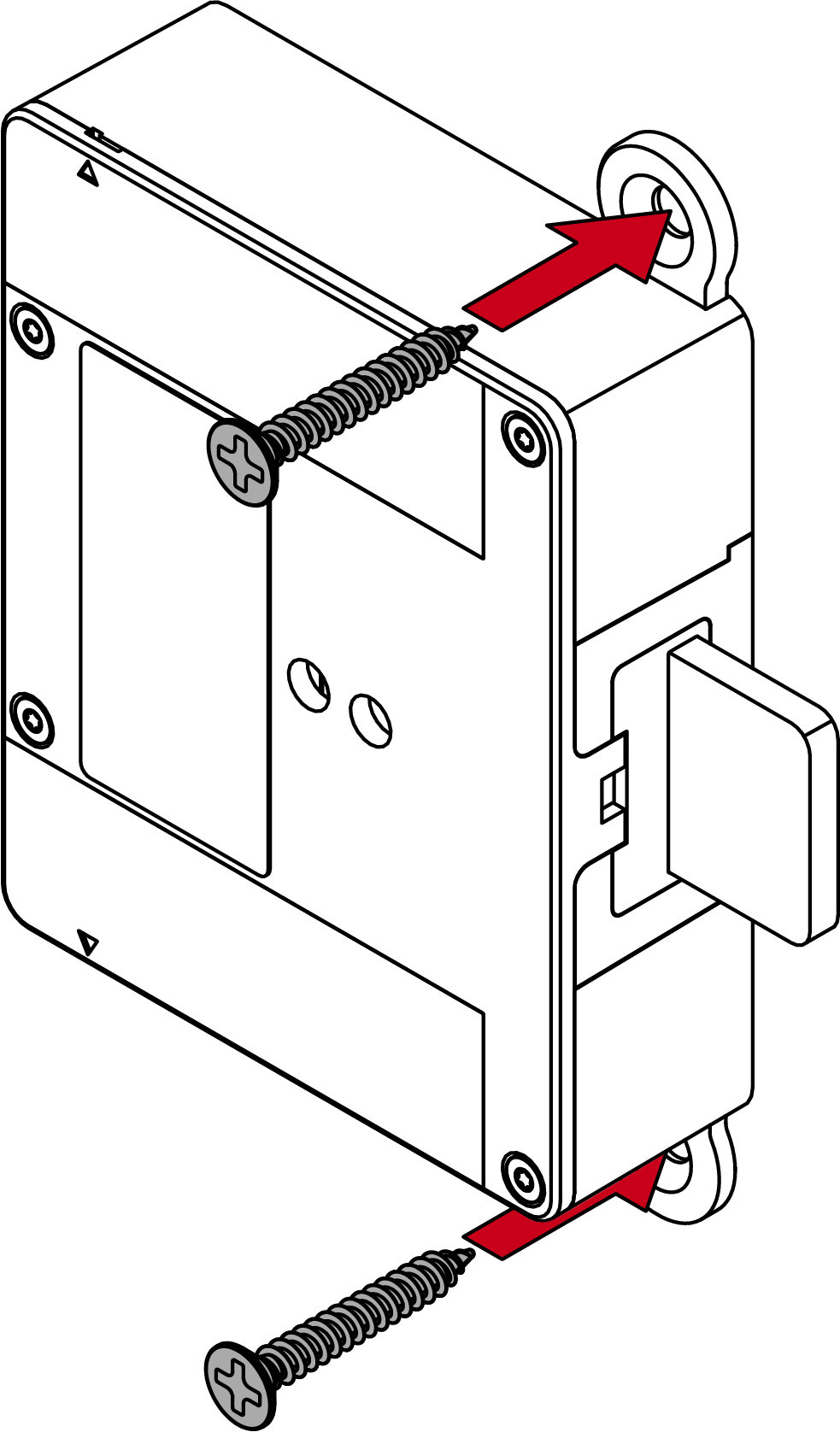 - Voor houten deuren: lijn het motorblok uit en schroef de fixaties met geschikte schroeven vast.