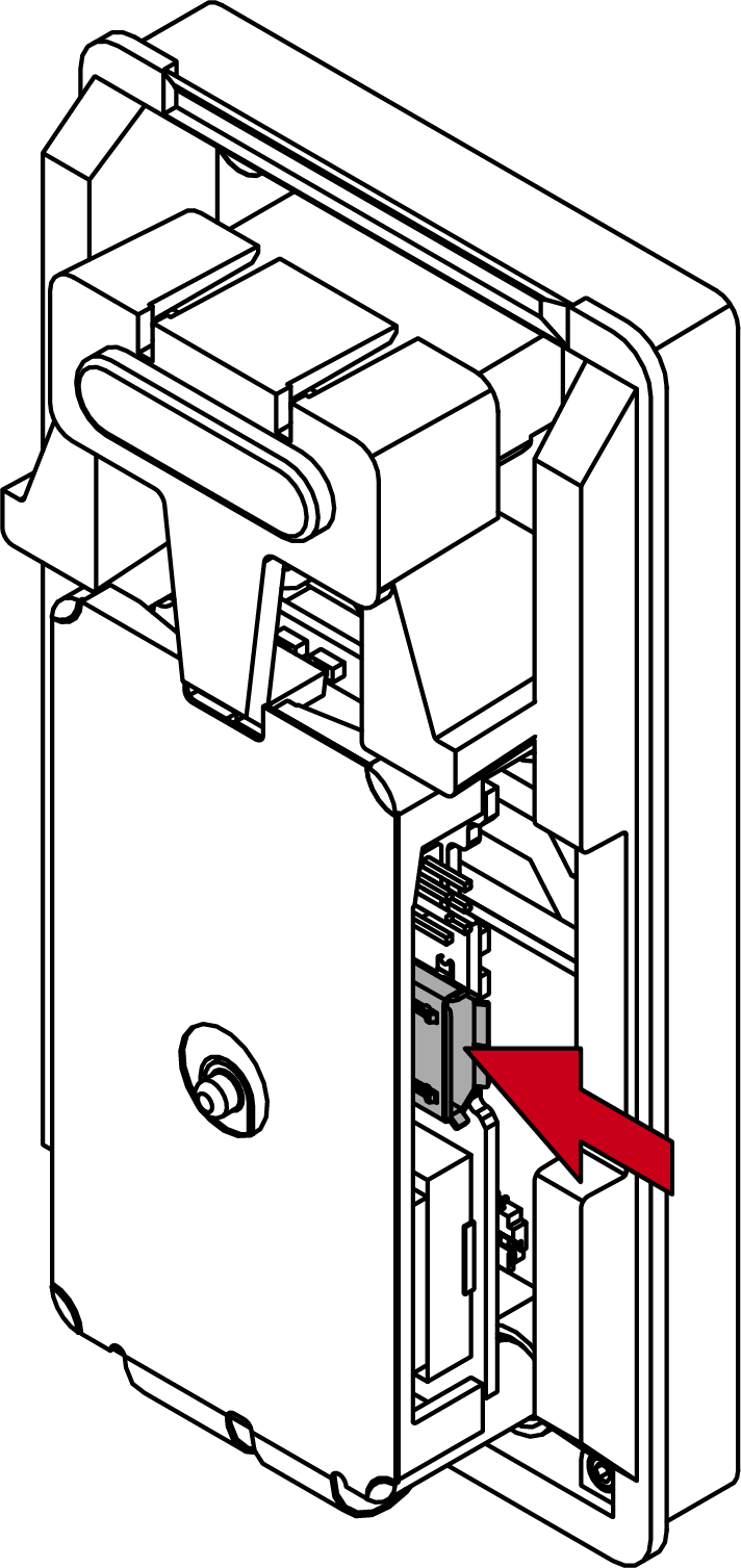 - Draai de schroef aan de onderkant van de lezer rechtsom naar binnen (0,9 mm inbussleutel).