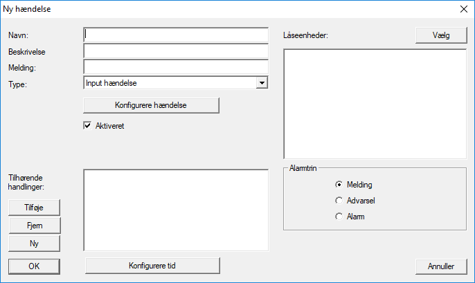 - Hvis en handling skal bestemmes, kan man tilknytte en handling med fanen Ny eller Tilføje .
