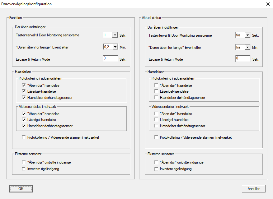 - Vinduet Dørovervågningskonfiguration åbnes.
