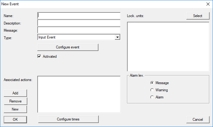 If you wish to use LSM or SmartSurveil (see SmartSurveil) to evaluate an input, you first need to create the corresponding input as an event in LSM. Only then will changes to the input also be saved in the LSM database.