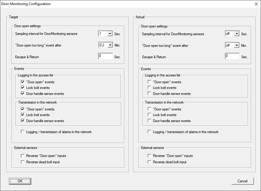 - Activate in the area Target-Events in the areas Logging in the access list and Transmission in the network the DoorMonitoring events that you would like to monitor (e.g.
