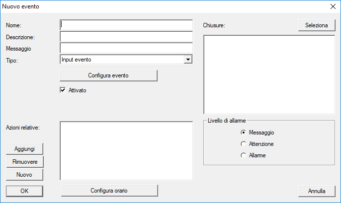 - Si apre la finestra Input evento.