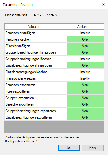 Wenn Sie das Programm schließen, wird Ihnen die "Zusammenfassung" angezeigt. Sie sehen hier nochmals, mit welchen Einstellungen der Dienst im Hintergrund arbeitet, nachdem Sie das Fenster geschlossen haben.