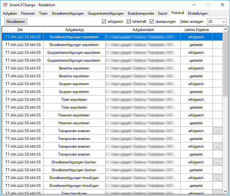 Das Protokoll wird vom Programm laufend fortgeschrieben. Um die neuesten Ereignisse im Protokoll zu sehen, müssen Sie das Protokoll aktualisieren.