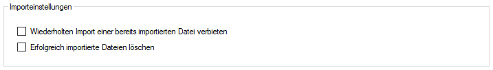 Mit einer Markierung des Kästchens bei Wiederholten Import einer bereits importierten Datei verbieten verhindern Sie, dass dieselbe Datei nochmals importiert und zur Synchronisation verwendet wird. Solange dieses Kästchen markiert ist, kann jede Datei nur einmal importiert und zur Synchronisation verwendet werden.