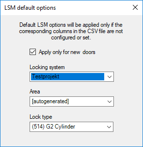 Lock type | If the field is empty in the source file or no suitable selection has been made, the value selected here is used. |