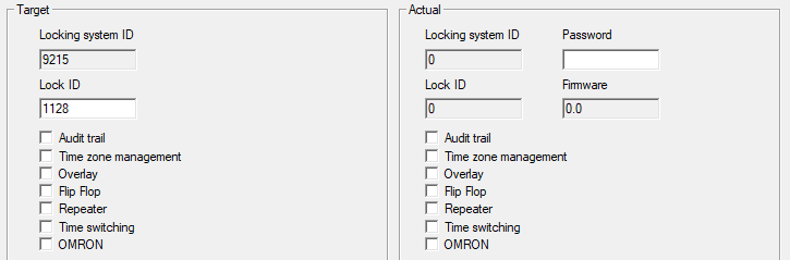- The right side shows the locking device's current status (Target) – i.e. the status which was last programmed.