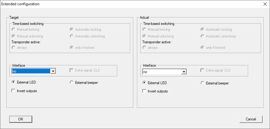 - The right side shows the locking device's current status (Target) – i.e. the status which was last programmed.