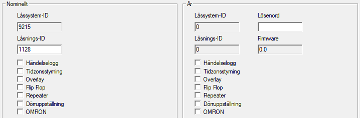 - På vänster sida visas låsets nominella status (Nominellt) – alltså den status som konfigurerats i LSM Software och som man vill att låset ska ha.
