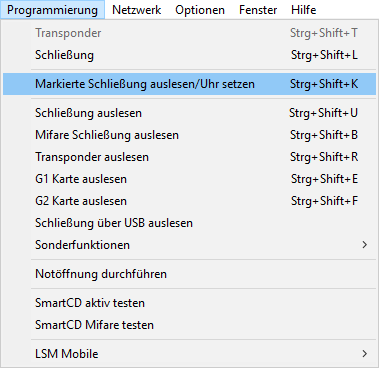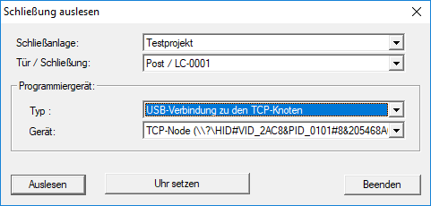 - Fenster Schließung auslesen öffnet sich.