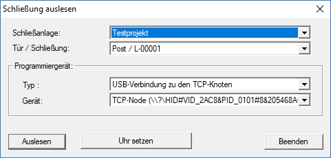 - Fenster Schließung auslesen öffnet sich.