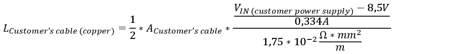 The result is the maximum length, which is calculated based on the voltage drop. This length comprises a forward and return path. You should use an own power supply unit to increase operational reliability if the cable is more than 75% of the maximum calculated length.