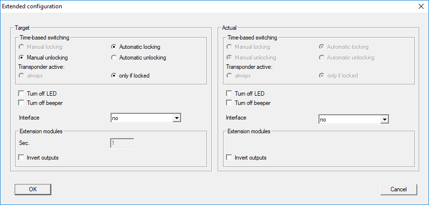 - Set the options for automatic and manual locking and unlocking in the Time-based switching section as you require (see Extended configuration without SmartOutput module and Extended configuration with SmartOutput modules).