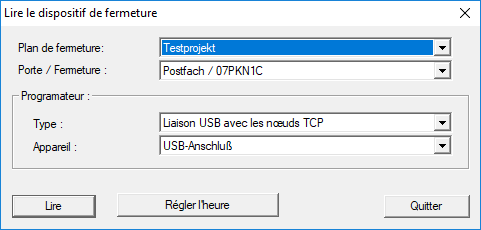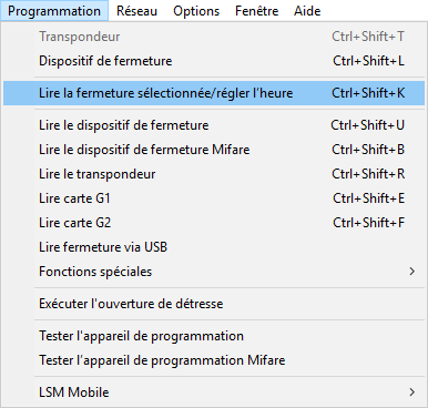 - La fenêtre Lire le dispositif de fermeture s’ouvre.