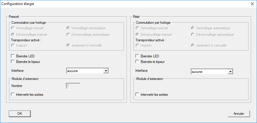 - La fenêtre Configuration élargie s’ouvre.