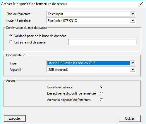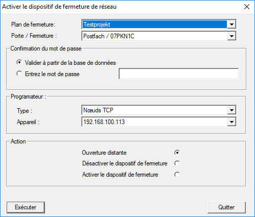 - La fenêtre Activer le dispositif de fermeture de réseau s’ouvre.