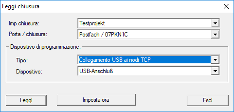 - Scegliere la voce Collegamento USB ai nodi TCP.