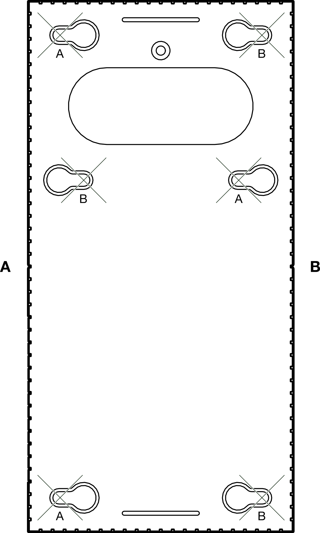- Wanneer u de controller met de zijde A naar boven monteert, dan boort u de met “A” gemarkeerde openingen.