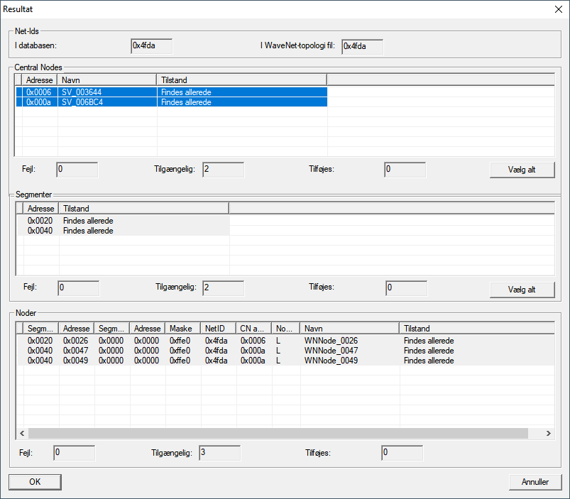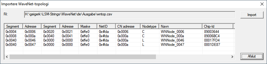 - Vinduet Importere WaveNet-topologi åbnes. En liste over enheder, der skal importeres.