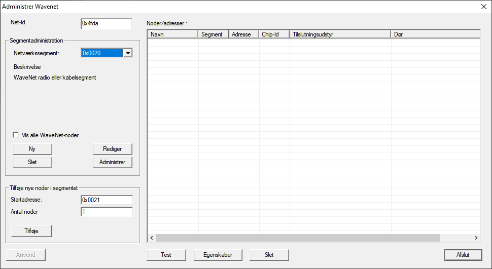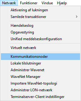 vælges eventuelt det kommunikationsknudepunkt, som anvendes til WaveNet. - I oversigten vises de poster for RouterNodes, som ikke er slettet.