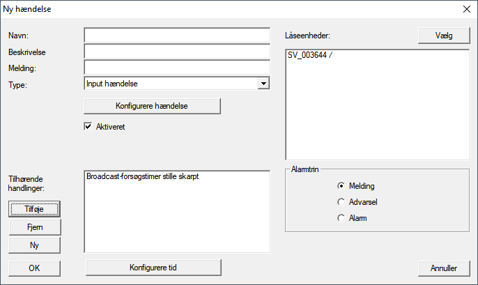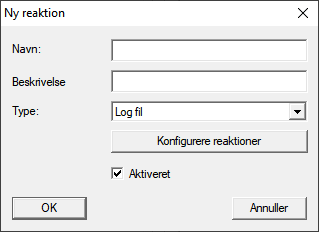 Flere informationer om oprettelse om oprettelse af en hændelse og en reaktion findes i LSM-manualen.