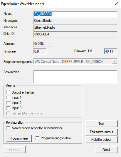 - Vinduet Egenskaber WaveNet-noder åbnes.