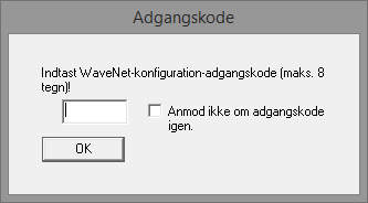 Adgangskoden kan kun tildeles ved den første start af WaveNet-manageren. Hvis du ikke har tildelt nogen adgangskode ved den første start, kan du ikke længere tildele nogen adgangskode mere efterfølgende. Så er adgangskoden tom.