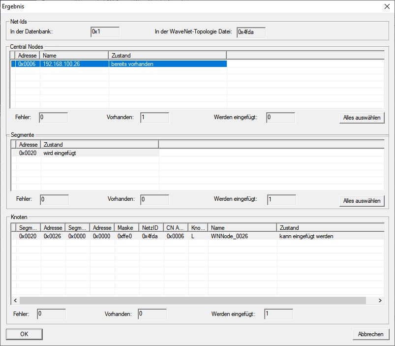 - WaveNet-Topologie angelegt und gespeichert (siehe RouterNode dem WaveNet hinzufügen und LockNodes dem WaveNet hinzufügen).